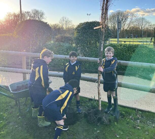 Prep children planted carefully selected silver birch trees around the school site to support our local environment