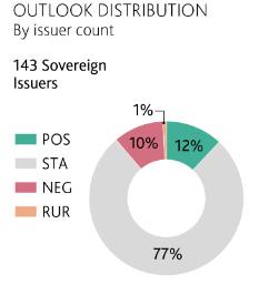 The share of ratings on positive outlook is almost balanced with share of ratings on negative outlook