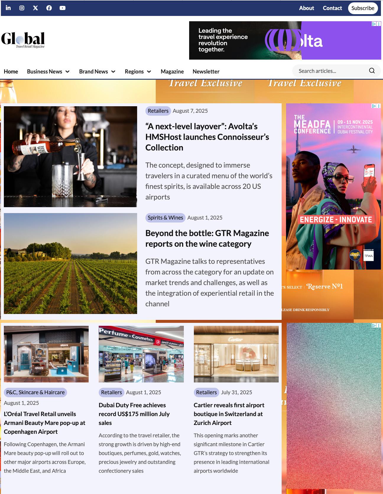 Since the early '90s, Global Travel Retail Magazine (GTR Magazine) has been the authoritative voice of duty free and travel retail. As our industry continues its strong growth trajectory in 2025, we remain its most trusted and influential source for breaking news, insightful analysis and expert commentary that drives business decisions.
