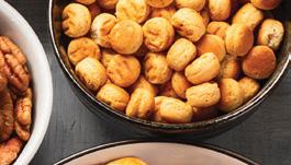 The Cranberry & Sage Twists offer a sweet-andsavory profile, blending tart cranberries with aromatic sage to serve alongside cheese boards, antipasti or festive spreads. Maple & Smoked Pecan Twists deliver the warming sweetness of maple paired with a rich, smoky depth of pecan, without containing nuts.