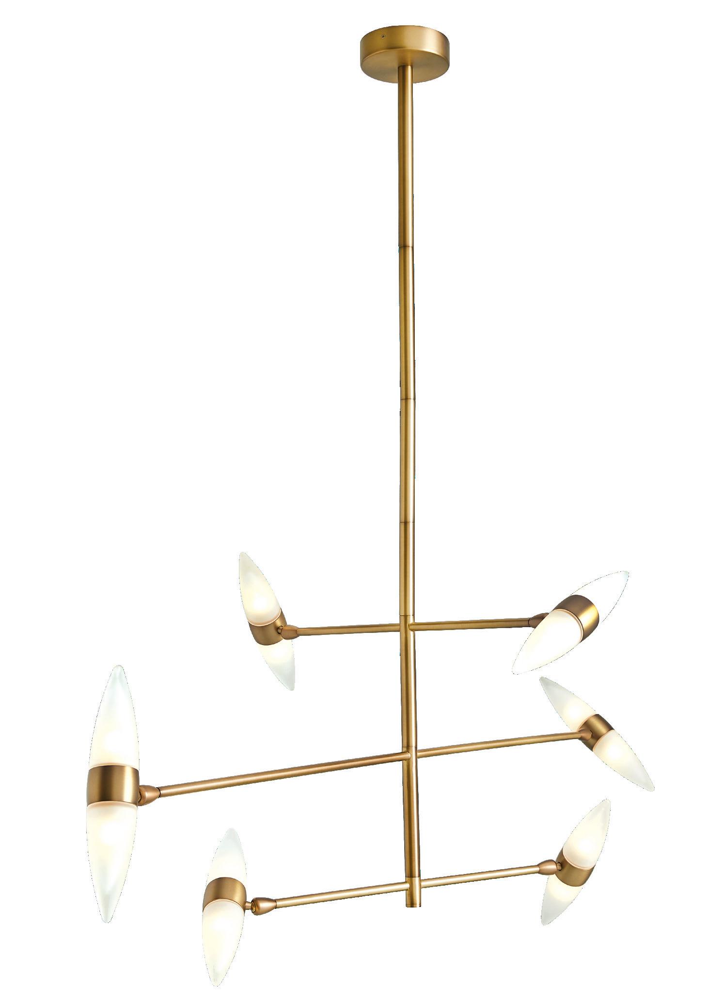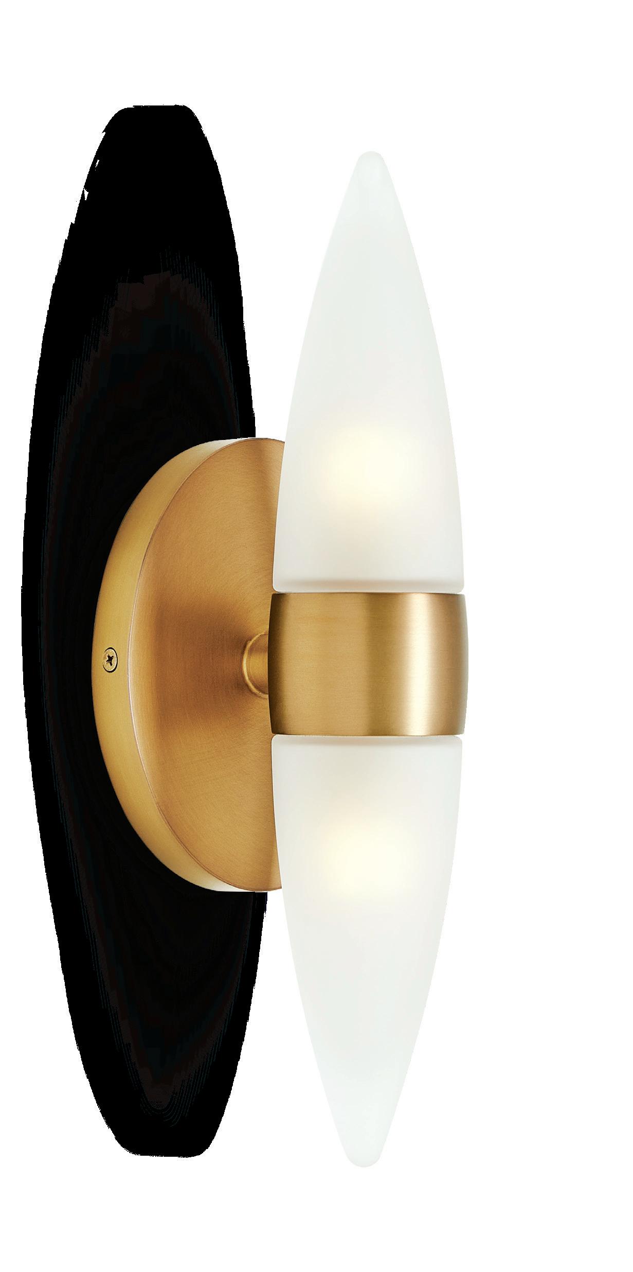 Modern simplicity was the design directive when creating the Callie Collection. Frosted saber-shaped glass radiates with the warm glow of diffused light and pairs beautifully with the satin brass structural elements.