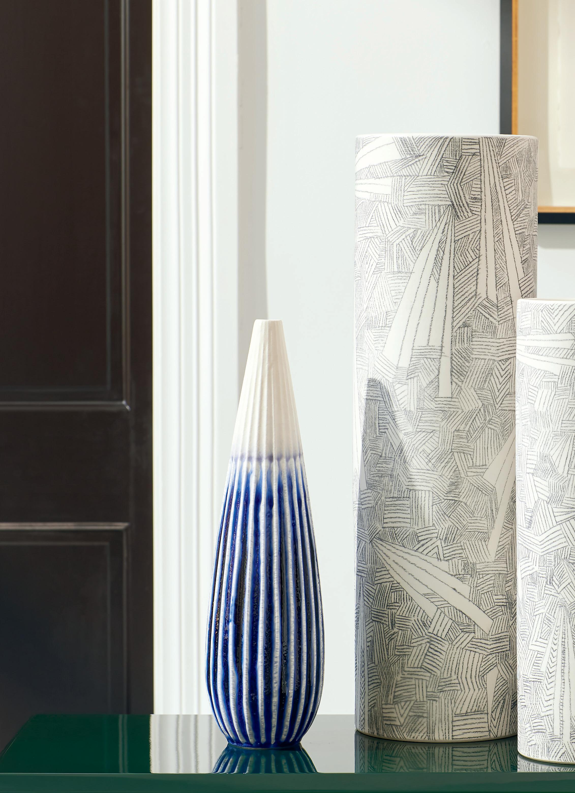 Small canvases need not be insignificant. A simple side table can become a sophisticated vignette platform. Arrange favorite books with our beautiful art glass and ceramic elements to create visual interest.