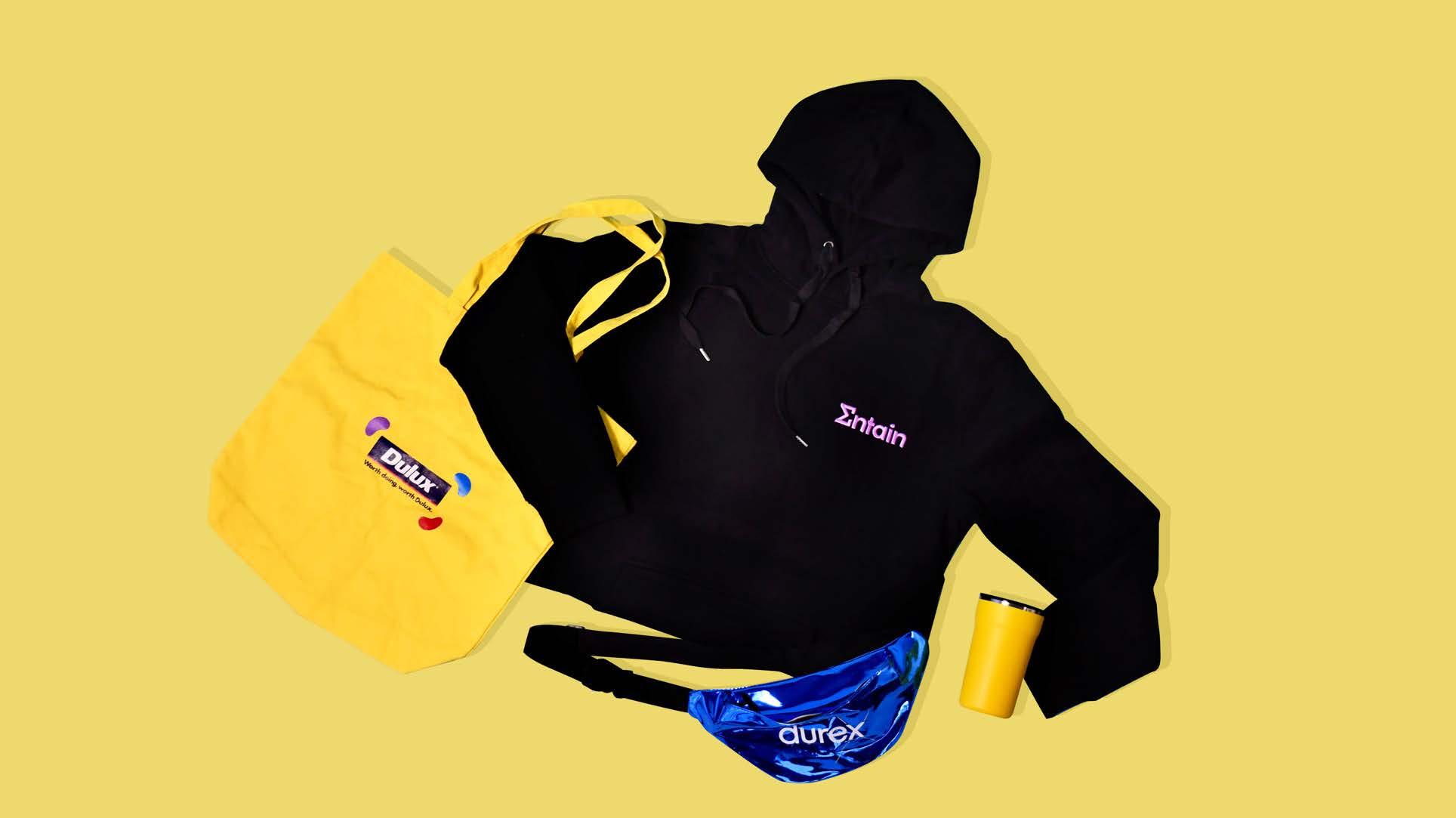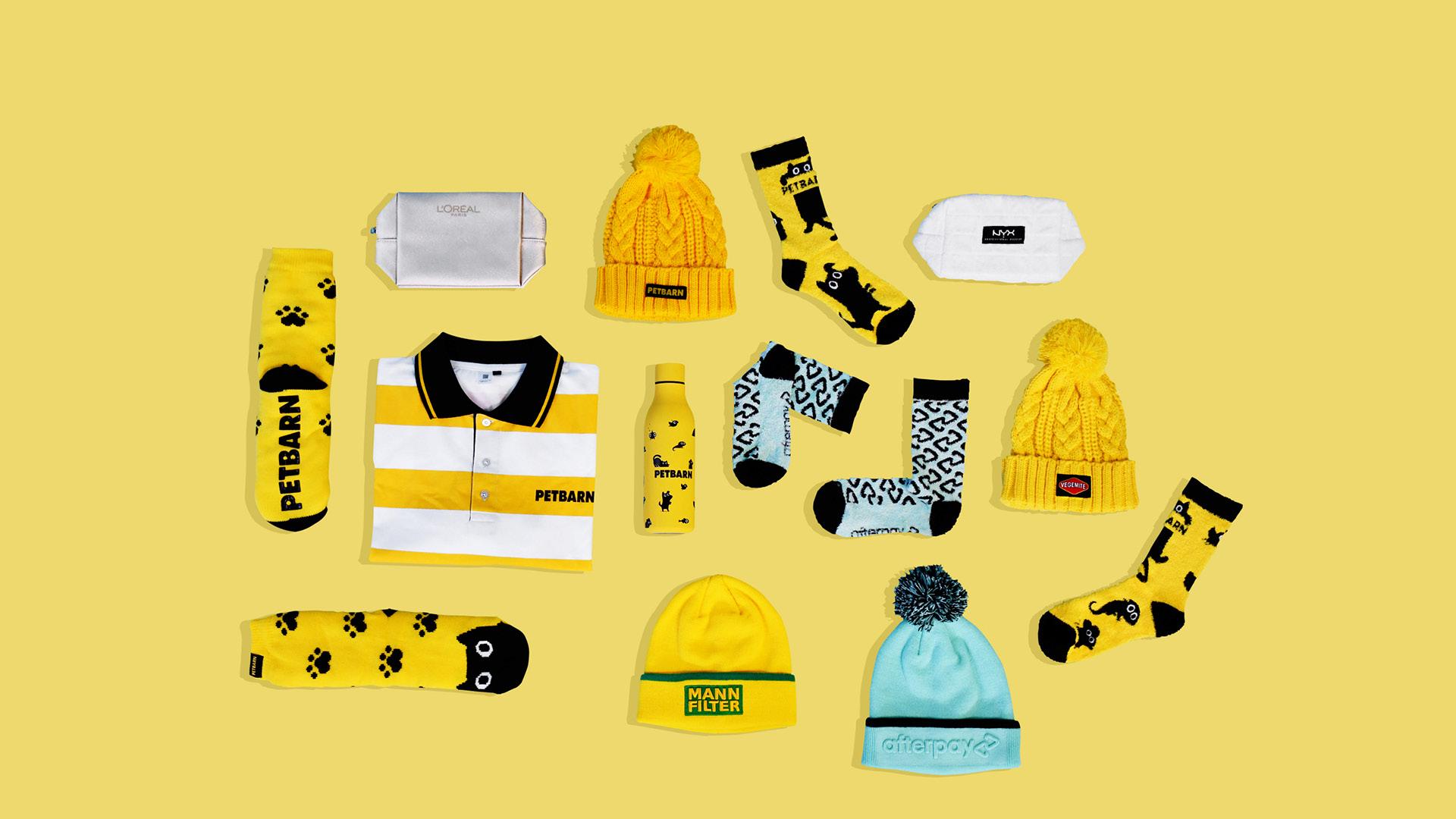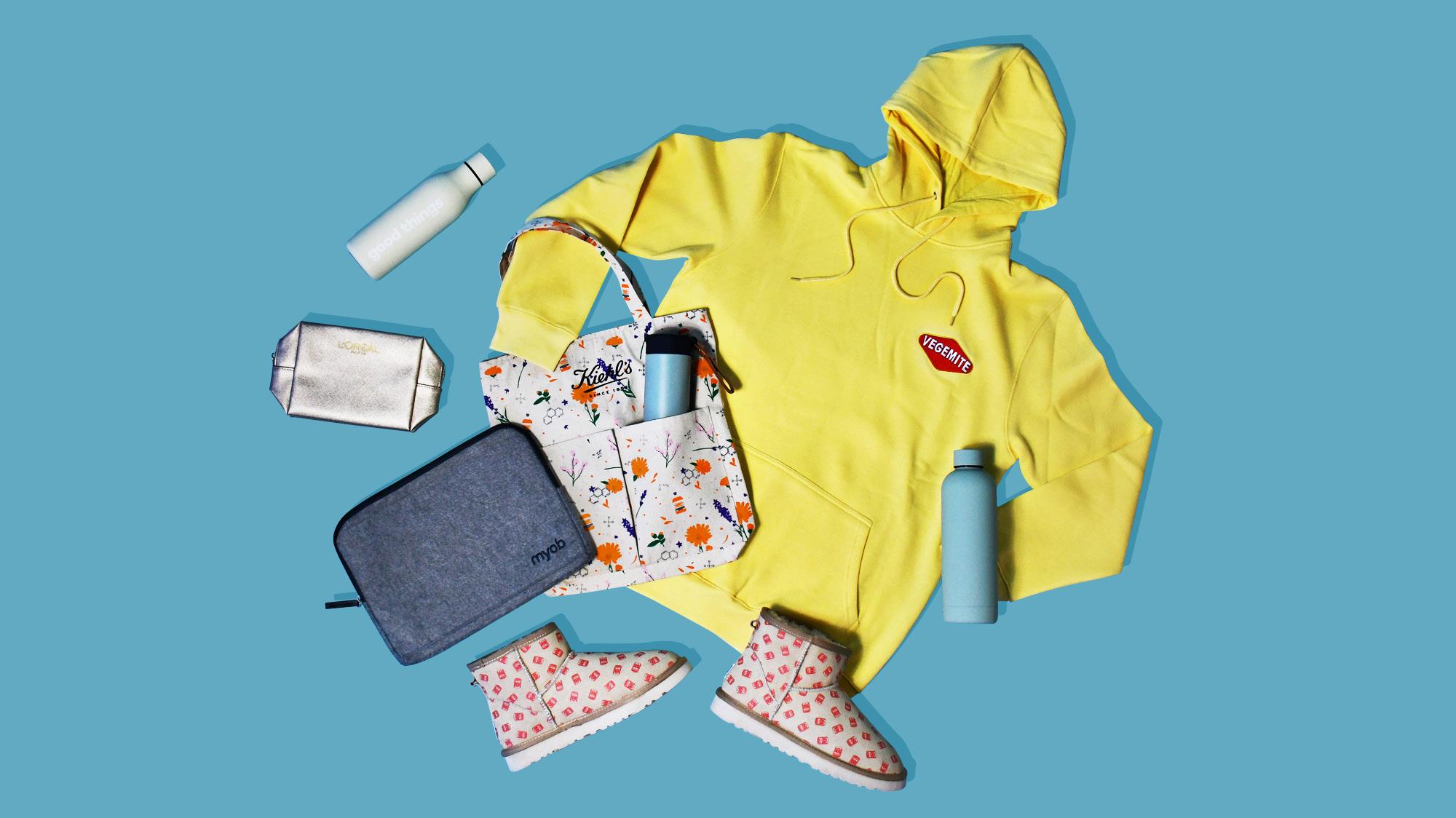 KEY: 1. Saffinao Cosmetics Bag 2. Avery Rubber Coated Bottle* 3. Custom Pattern Print Tote Bag with Front Pockets 4. RPET Felt Laptop Sleeve 5. Branded Winter Boots 6. Hoodie 7. 500ml Rubber Coated Drink Bottle* 8. Tea Infuser Bottle * Pricing available on website Enquire for MOQs and Pricing. 2