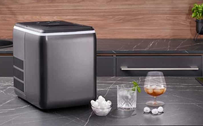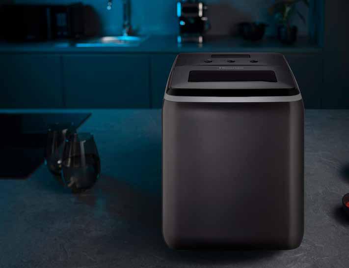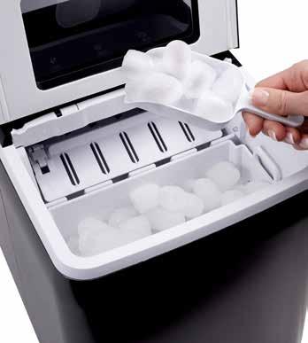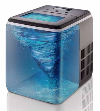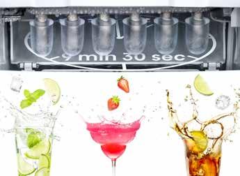To have fresh ice always on stock, just fill the water reservoir and press the start button. The first batch of 12 beautifully cold ice cubes will be ready in 9 minutes and 30 seconds!