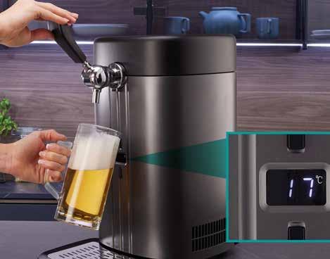 A super quiet thermoelectrical cooling system will keep your beer fresh at the optimum drinking temperatures. You can set the temperatures from 3 to 12° C, while the machine is pre-set at 5° C. The nice LED display will show you the temperature, so you will know when the best moment is to start pouring the beer.