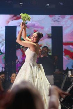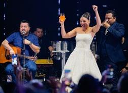A noiva joga o buquê durante show da dupla Israel e Rodolffo
