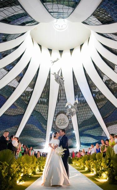 Rodeados de amigos e familiares, Ayanda Taveira e Luan Gomes escolheram a icônica Catedral Metropolitana de Brasília para se casar. A noiva arrancou suspiros dos convidados na cerimônia com um modelo by Fernando Peixoto e beleza por Eliel Almeida. A recepção, no Unique Palace, ficou aos cuidados de Laís Bergmann e ganhou ares de sofisticação com a decoração de Valéria Leão Bittar. Para fazer a pista ferver até altas horas, os cantores Alexandre Peixe e os sertanejos Yuri e Rafael não deixaram nenhum convidado parado. A festa contou ainda com show especial do cantor Bruno, da dupla com Marrone.
