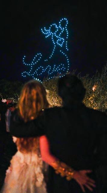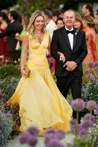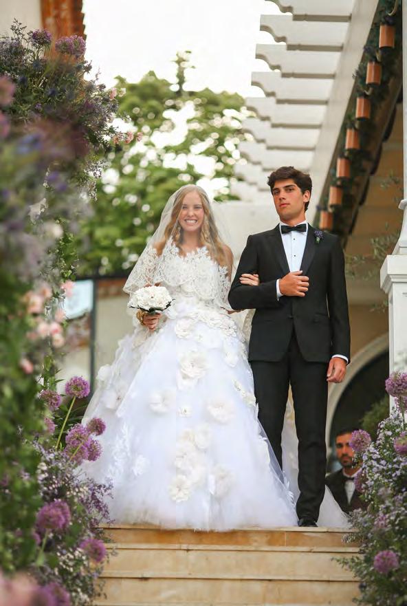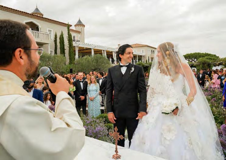 Depois de receber a bênção de seus familiares em cerimônia religiosa na Igrejinha, em Brasília, Giovanna Adriano e Rodrigo Vieira renovaram seus votos de amor eterno em três celebrações no casamento palaciano no Château de La Messardière, em Saint Tropez, na França. A noiva fez sua entrada junto ao irmão, Fernando, usando um Alta Moda Dolce&Gabbana desenhado especialmente para ela, com fartos bordados em rendas, flores e conchas, que causou suspiros nos invitados. Irreverente, Giovanna usou tiara e pulseiras douradas para compor o look do grande dia, e teve sua beleza assinada por Marcos Proença. Após o SIM, os convidados seguiram para um jantar sob dezenas de oliveiras e o mar como panorama, no Jardim de Pampelonne. O DJ francês JackE animou o salão de danças.