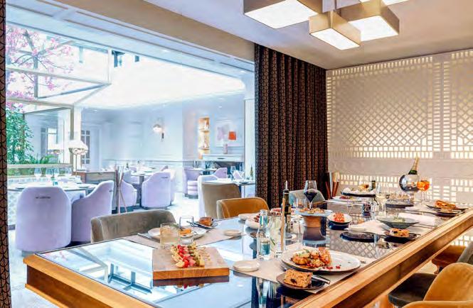 No coração do Majestic, o bar Galerie du Fouquet’s é um espaço para os amantes da coquetelaria, liderado pelo mixologista Emanuele Balestra. Balestra, com passagens por hotéis renomados como o InterContinental Sydney e o Hilton Glasgow, eleva a mixologia a uma experiência artística, utilizando ingredientes frescos do jardim orgânico do hotel. O menu apresenta combinações inovadoras, como o Gin Fizz de Beterraba e a Margarita com sálvia, resultantes de processos botânicos e técnicas avançadas. Com o uso de ultrassom e Rotavapor, Balestra extrai o máximo das essências naturais. Recentemente, ele lançou a cerveja Blanche do Majestic, uma criação artesanal em colaboração com a microcervejaria italiana de Luigi d’Amelo, feita com ingredientes locais, como laranjas de Grasse, coentro e pelargônio rosa, adicionando uma nova dimensão ao repertório de bebidas do hotel. Cada detalhe foi cuidadosamente pensado, desde a criação de infusões até o design dos copos.