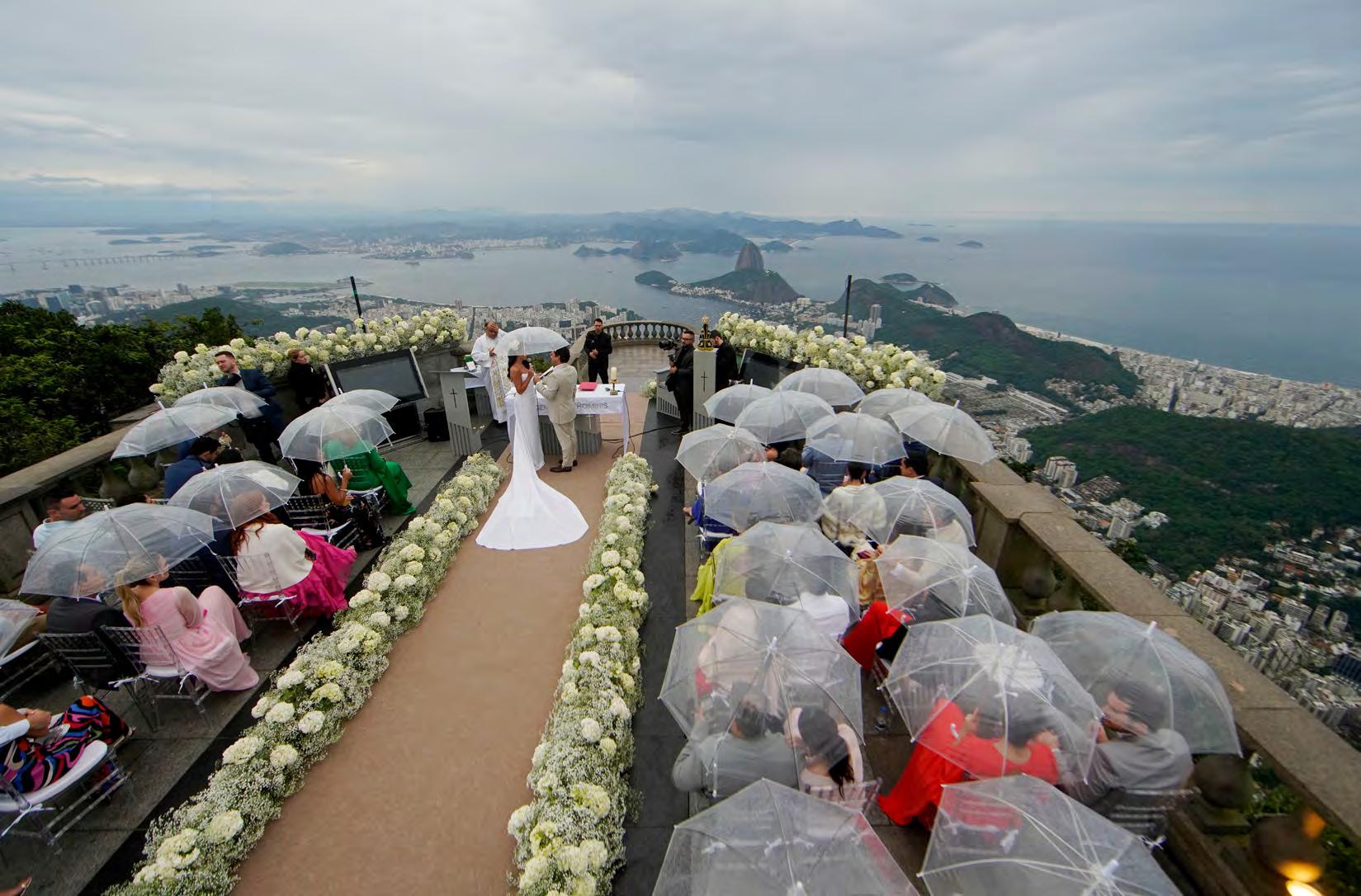 Para celebrar seus dez anos de união, Juliana Favato e Marino Colpo reuniram cinquenta seletos convidados para brindar a data. O ponto mais alto foi a cerimônia ao nascer do sol aos pés do Cristo Redentor, testemunhado pelos amigos e pelos três filhos do casal. Para o grande momento, Juliana elegeu um modelo sem mangas Giuseppe di Morabito com intervenções do estilista Paulo Araújo e beleza assinada por GJunior. Após a cerimônia, os convidados seguiram para um almoço no renomado Baretto-Londra, do Hotel Fasano. Ao todo, foram quatro dias de praia e muita festa.