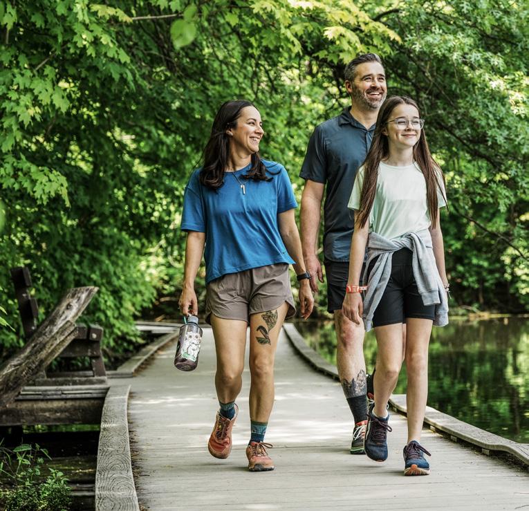 Connect with nature past or present, outdoors or in. A botanical oasis awaits at Krohn Conservatory, with glass rooms bursting with orchids, cacti, palms and bonsai. Return for seasonal exhibits in the Floral Show Room. Summit Park in Blue Ash is a year-round gathering place for entertainment, walking, playing with pets and taking in a 360-degree view from the Observation Tower. Cincinnati Nature Center, across 1,800 acres and 20 miles of trails, inspires conservation through hiking, clubs, education and land stewardship. Devou Park also offers plenty of hiking across its 700 acres, both paved and backcountry, as well as mountain biking, a museum, golf course, restaurant and city overlook. Families love Tower Park’s (LEFT) accessible playground, sports facilities and forested walking and biking trails in Fort Thomas. Discover mammoth friends from the Ice Age at Big Bone Lick State Historic Site and their modern descendants, bison! Wander the Discovery Trail to learn about the salt lick’s prehistoric past, then find more to explore in its hiking trails, campsites and activities.