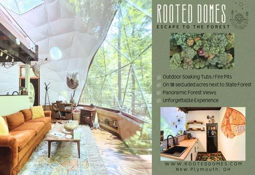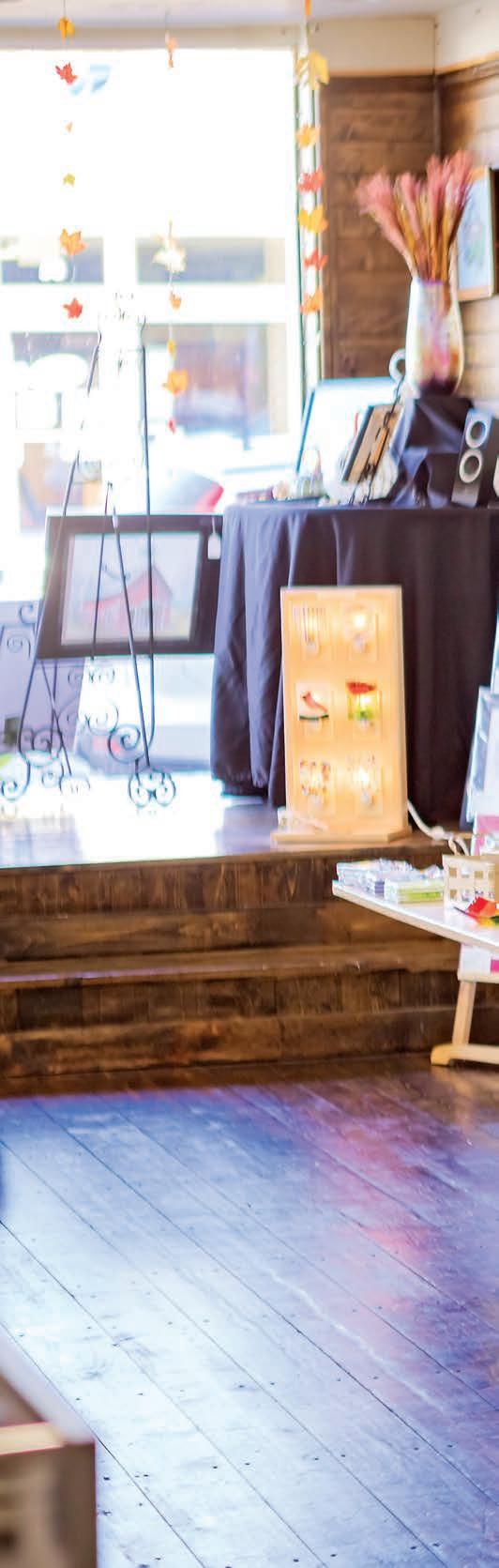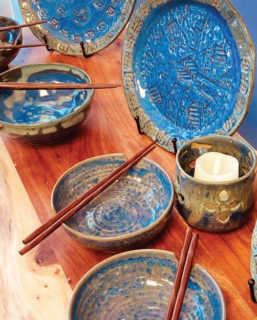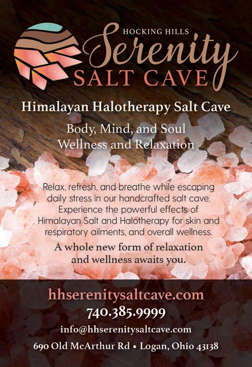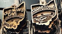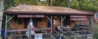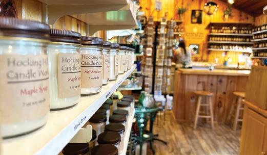 entering and finding everything from a 4-foot chime resembling the sounds of cathedral bells to 6-inch chimes that tinkle-tinkle their way into your heart. Judy Hard and her late husband, Mike, purchased the property in 2007. Judy says that Mike’s real passion was for the candle shop, where he loved making the candles himself. To honor that love today, visitors can enroll in candlemaking classes to build a custom three-scent blend. Although a few visitors may happen on these unique shops by chance, most often they’ve heard about them from social media or word of mouth. “The businesses in this area look out for each other and are happy to tell our guests other places they should visit,” Judy says. A resident of the area for 24 years, she has nothing but good words to say about the allure of the Hocking Hills.