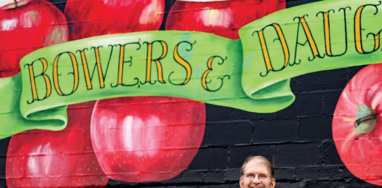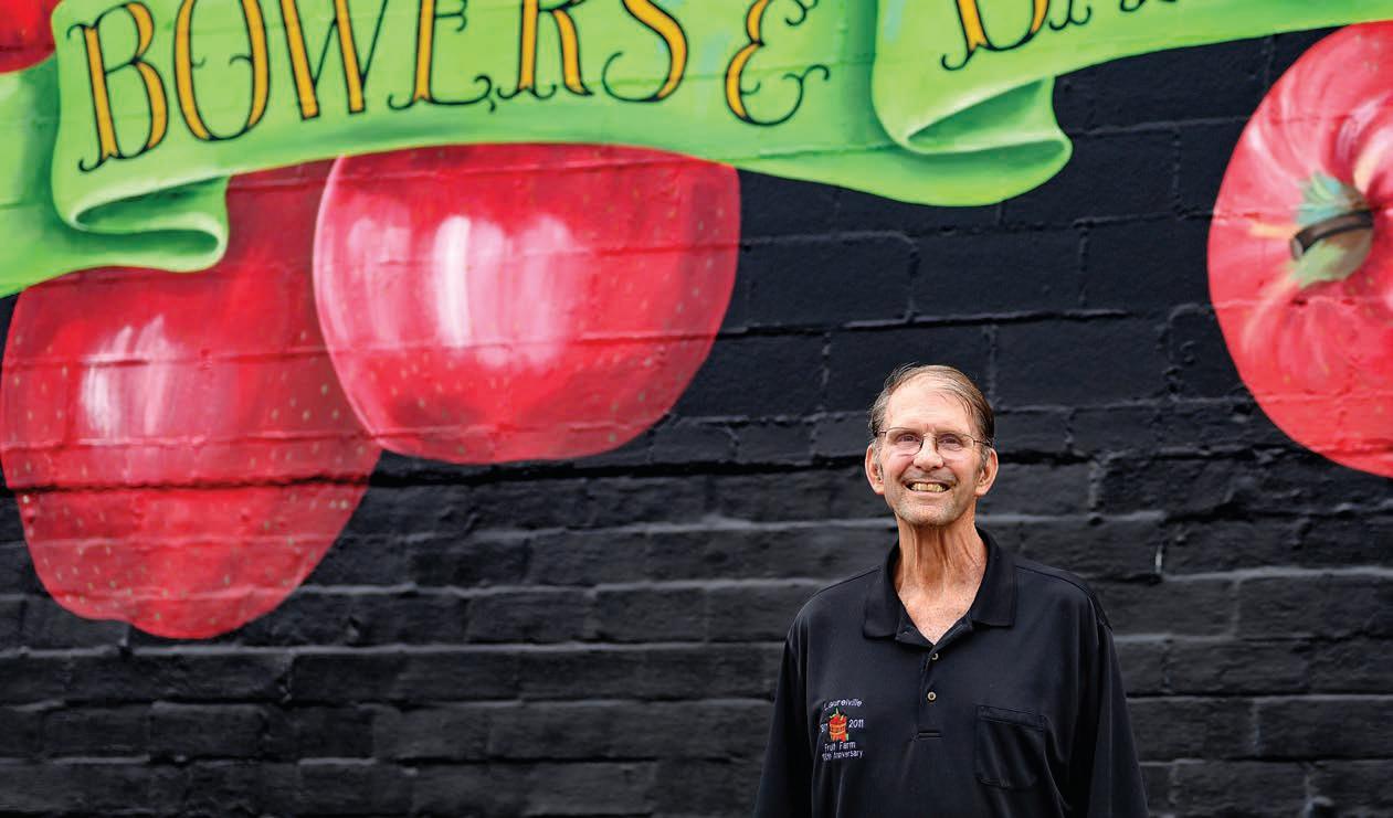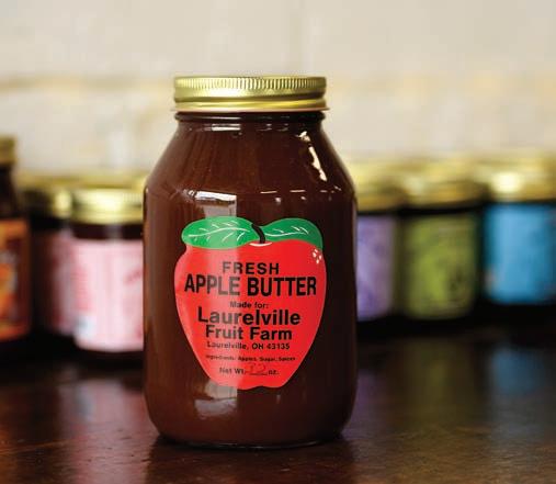 Passersby may very well be enticed to pull into the Laurelville Fruit Farm by the giant mural of juicy red apples on the building’s exterior painted by Chillicothe artist Pamela Kellough. Once inside, they’ll be captivated by the rustic simplicity of the place, adorned with dozens of huge wasp nests for decoration, not to mention two gleaming cash registers circa 1917 that still work. Owner Bob Bowers is the third generation of proprietors who’ve overseen the business since 1911, growing apples, peaches, cherries and plums at their nearby orchard, then selling them at the brickand-mortar storefront in Laurelville. Bowers says the most popular apple varieties they sell are Honeycrisp, Golden Delicious and EverCrisp, but what people really clamor for are the gallons of cider and glasses of award-winning cider slushies that are available after Labor Day. “Those slushies are so popular, people want them even if it’s snowing outside,” Bob says. The peaches he sells are Red Haven, an old, all-purpose variety good for canning, freezing or just plain snacking. “There are newer varieties available, but I still think Red Havens are the best,” Bob comments. He’s happy to be a part of the Laurelville community, a small town where he says people still look out for each other. He likes to refer to the Hocking Hills as the “Little Smokies,” a place that attracts visitors from afar but that’s still isolated and peaceful. “Even with the number of tourists who visit us, it’s still a quiet, laid-back place,” he says.