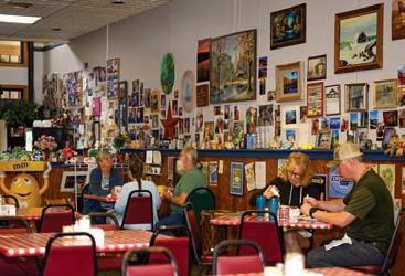 All manner of bric-a-brac adorns the walls and counters at M & M Family Diner, a fixture in Logan since 2006. There’s everything from Ohio State Buckeye pennants to a reproduction of a Norman Rockwell painting to a cow cookie jar and even a leg lamp. “Everything has a story associated with it,” says owner Michelle Bourne. “Many are gifts from customers.” But even though there are many statues and caricatures of M&M’s candies scattered through the restaurant, the real M & Ms for whom the restaurant is named are Michelle and her husband, Marvin Bourne. Their sons, Brent and Aaron Cooke — who also work here — make this a family diner in yet another sense.