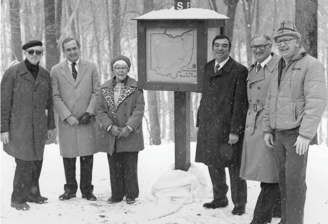 Some of those at the Buckeye Trail’s dedication March 20, 1981, were (left to right) Ralph Ramey, Lou Albert, Emily Gregor, Lou Tsipis, Robert Teater and Ed DeLaet.