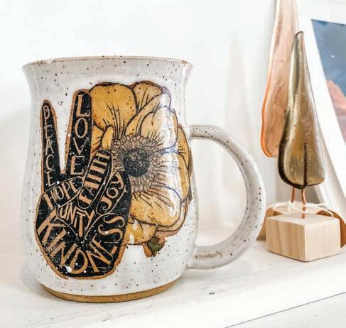 A few of the artists highlighted at Clutch Collective include Leslie Norris of Sugar Pop Press, a screen printer from Huntington, West Virginia, whose work has been a part of Clutch Collective since the beginning; Stephanie Orr, a ceramicist who makes plates and mugs that feature plant life from her home garden in Zanesville; and Steve Weber, the former mayor of Lowell, Ohio, who makes beautiful stained glass.