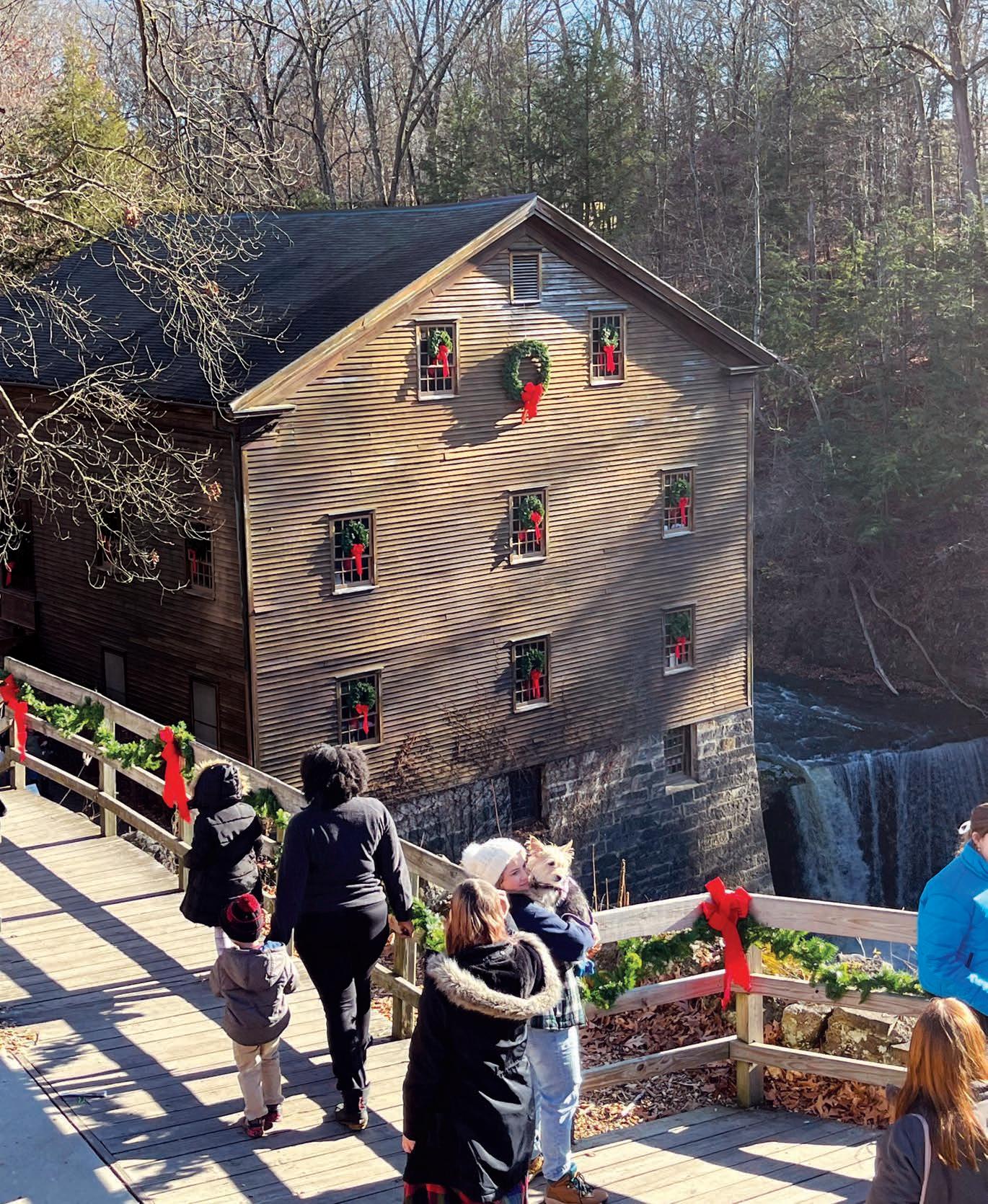Then there is the star of the event: Santa Claus, who brings his heartiest smile and rosy-red cheeks as small children eagerly wait their turn to talk toys and whisper their Christmas wishes before posing for a picture with the jolly old elf. Among the fragrant pine garlands, wreaths, bright red bows, twinkling Christmas lights and bountiful Christmas trees, the Giving Tree stands as a beacon to treat others to the warmth of Christmas and encourages visitors to leave behind new hats, scarves and mittens to be donated to a local shelter for those in need. 1001 Canfield Rd., Youngstown 44511, 330/740-7115, millcreekmetroparks. org/lantermans-mill