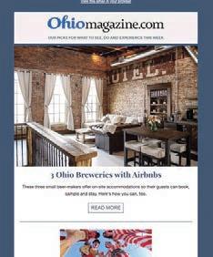 Stay connected with our email newsletters. Learn about fun events and festivals, explore our state’s food scene, get inspiration for outdoor adventures and find your next weekend getaway. Sign up by scanning the QR code or visiting ohiomagazine.com/newsletters