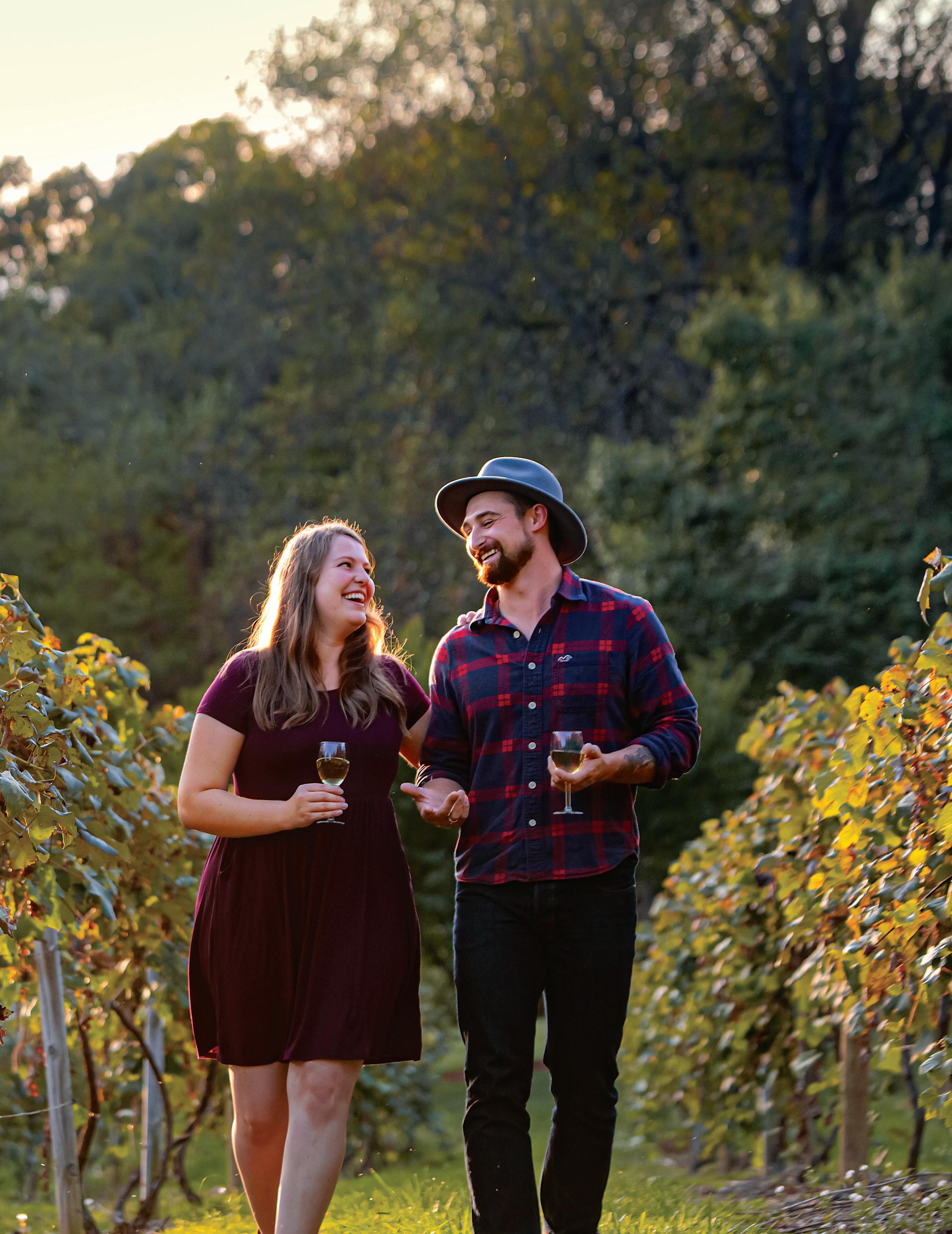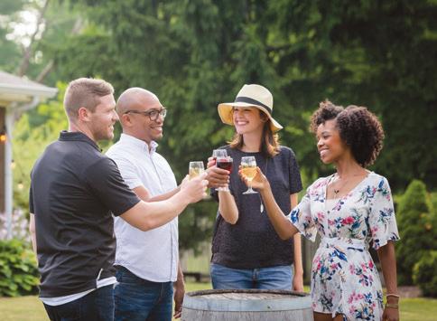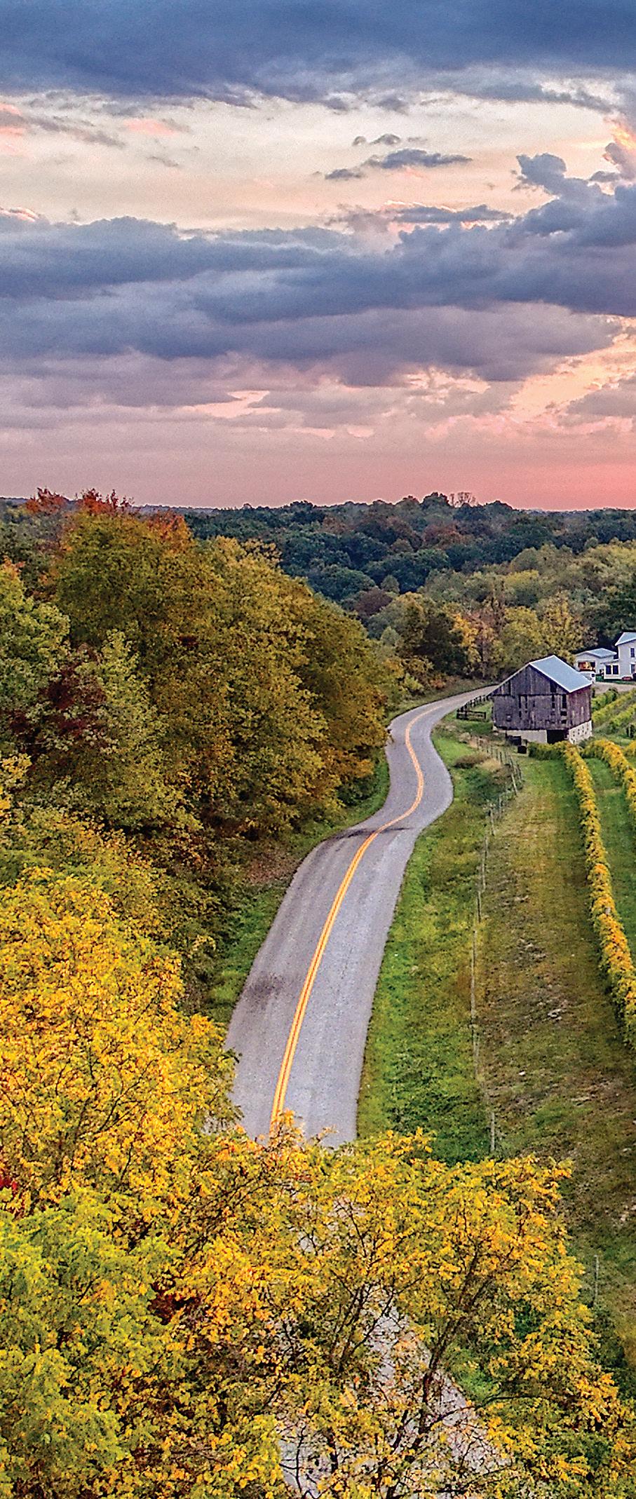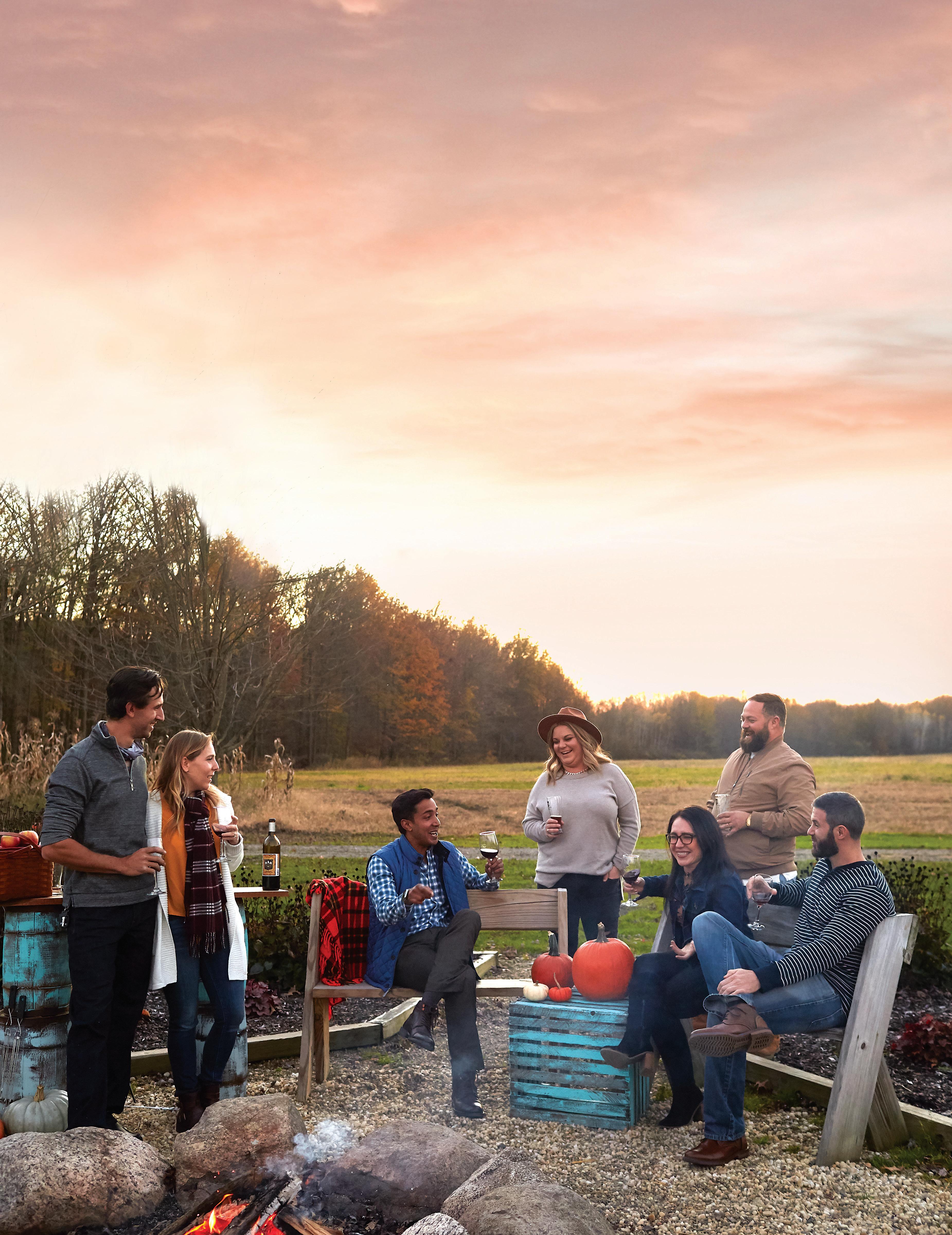 THE COLORS OF THE SEASON are on full display at French Ridge Vineyards & Winery, located in Killbuck in the heart of Amish Country. Try a bright apple or blueberry wine on a warmer day or a robust red for chilly evenings. The grapes at Harpersfield Vineyard in Geneva are harvested between late August and early October, leaving a distinctly sweet scent in the air. Take in the scent as you sip on their Clos mes Amis Pinot Noir with its dark cherry, chocolate, and oak flavors. Pick your own apples and peaches and sample homegrown whites, reds, and fruit and dessert wines at Quarry Hill Winery in Berlin Heights. The entire family is invited to pick pumpkins, take a wagon ride, wind through the corn maze, and soak up the fall fun at Maize Valley Winery and Craft Brewery in Hartville. Grab a juicy burger from the restaurant and enjoy tastes of their awardwinning wines.