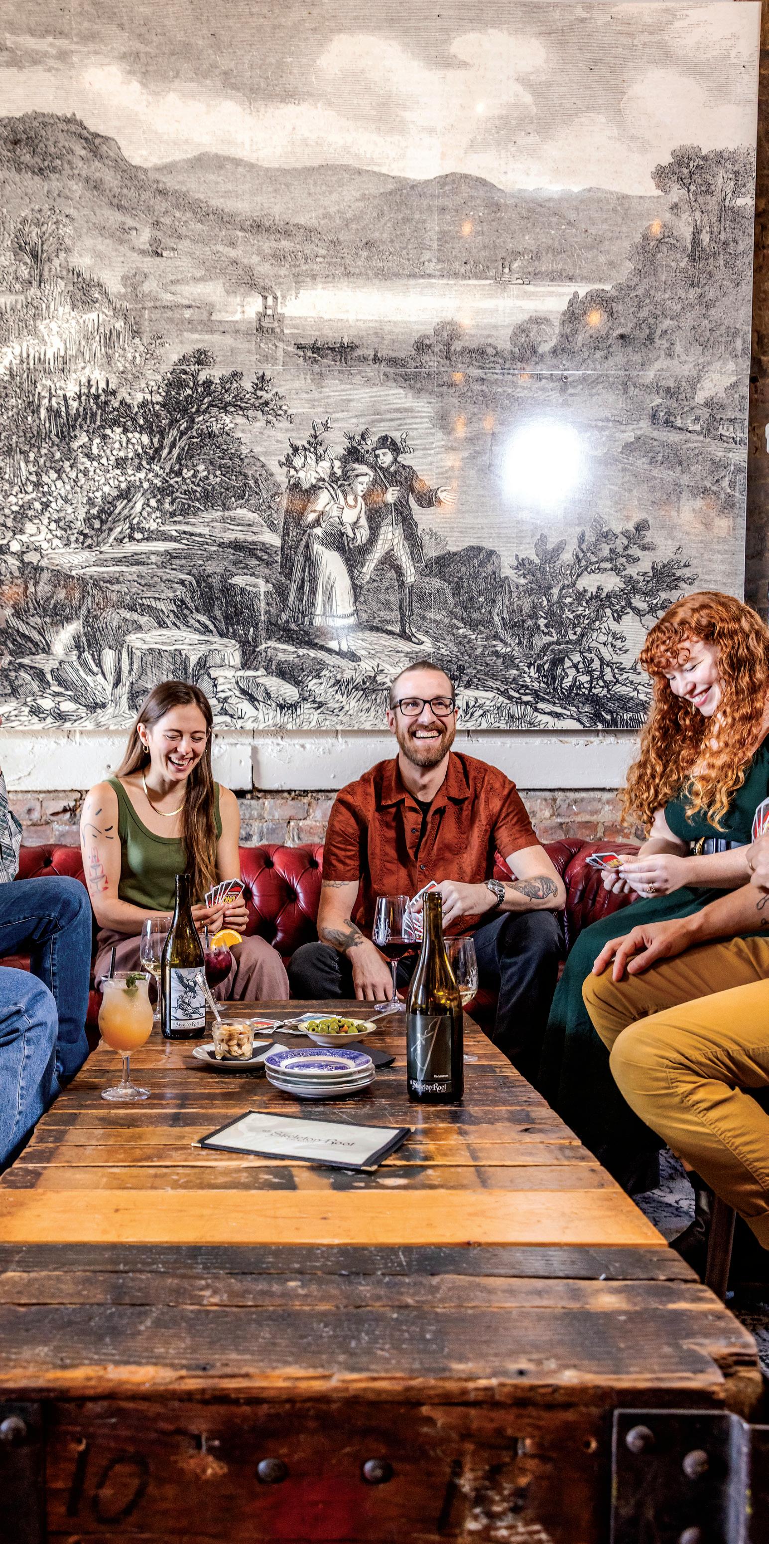 MacDonald’s partner, Josh Jackson, was by her side every step of the way. In 2016, she opened The Skeleton Root in an old warehouse in a light and airy loft area complete with couches and armchairs arranged as though they were in someone’s living room. There’s even a mural dating back to Nicholas Longworth’s day depicting terraced vineyards overlooking the Ohio River.