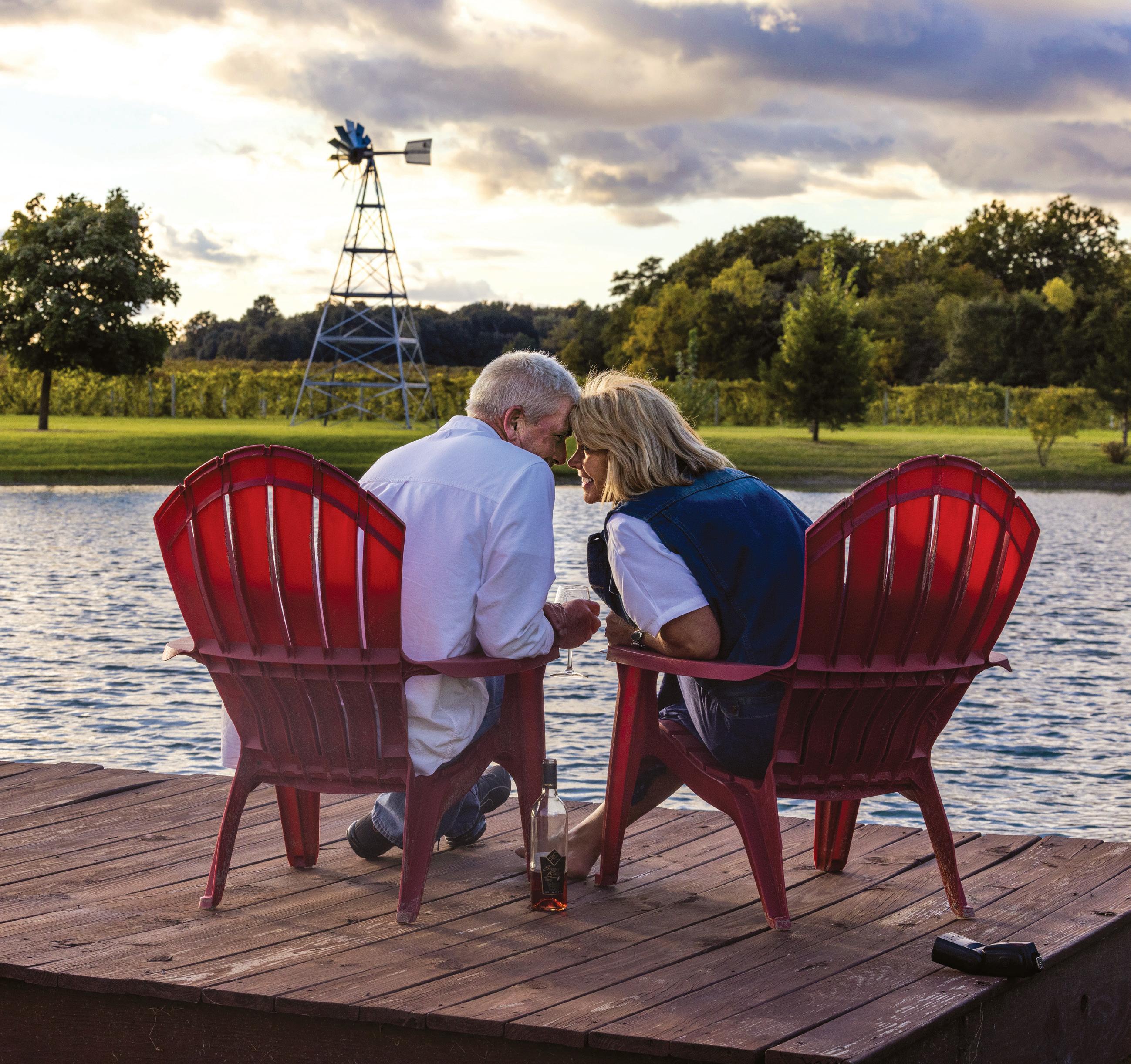 FROSTY AND FRIGID EVENINGS CALL FOR GREAT FOOD, DRINKS, AND CONVERSATIONS by the comfort of a warm fire. The rustic stone fireplace in Shade Winery’s enclosed pavilion creates the perfect cozy setting for a meal paired with one of 15-plus varieties. As the nights grow longer and the indoors are calling, it’s a treat to hunker down in a comfortable bed for a good night’s sleep. Savor a slice of homemade cheesecake and a glass of wine at the Wishmaker House in Bellville, a bed-andbreakfast with an on-site winery and restaurant. For something a little more rustic, the Green Eagle Winery & Brew Pub in rural Cortland offers The Eagle’s Nest Cabin located on the 55-acre country property behind the winery. And for a truly unique winter weather experience, try an award-winning ice wine from Laurello Vineyards in Geneva, including the pear- and apricot-flavored Sweet Genevieve or the habanero-infused Simply Mad.