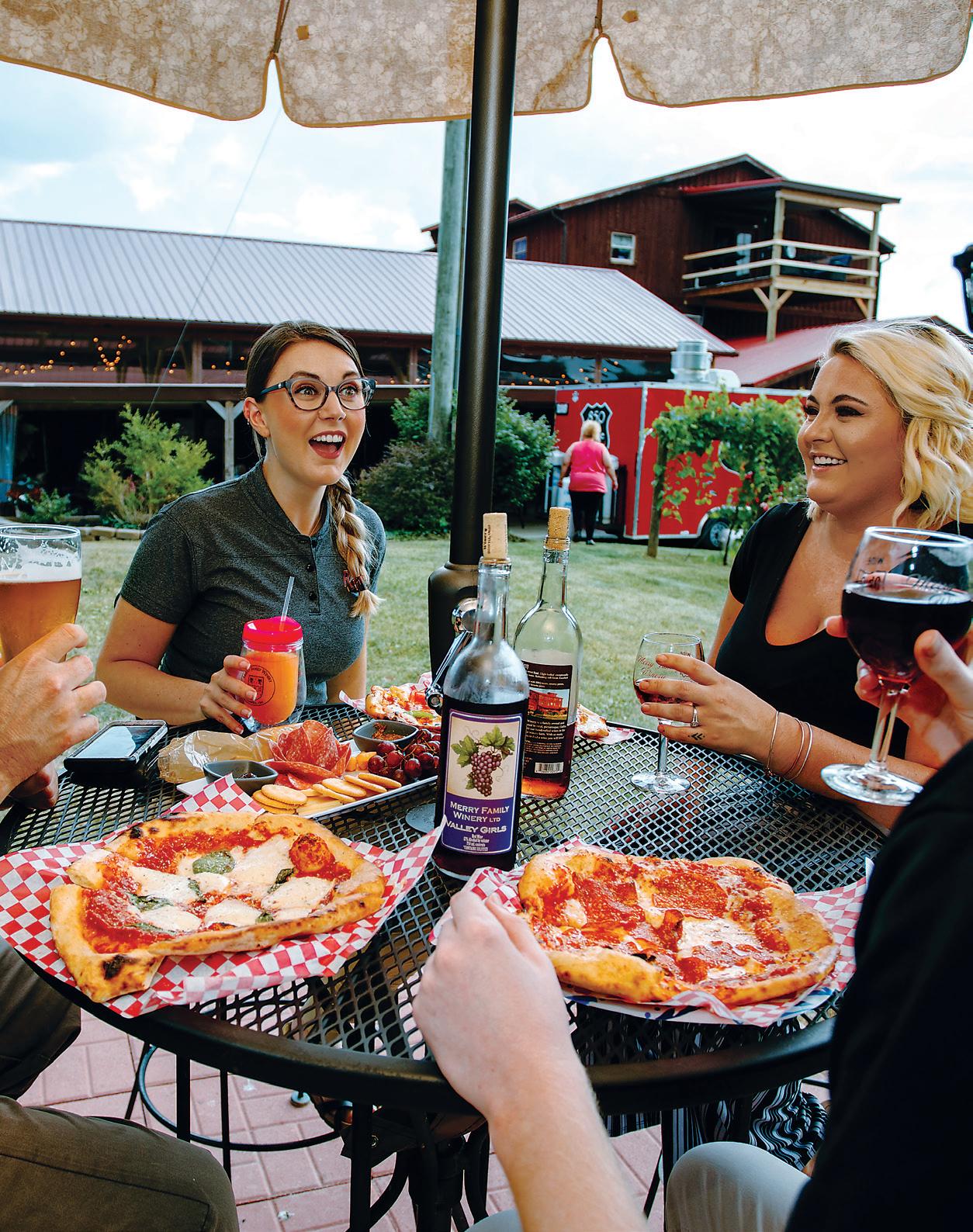 AS NATURE’S RENEWAL BEGINS TO PUSH AWAY THE SNOW COVER , there’s no better place to see nature come alive than at Sarah’s Vineyard Winery, located inside the breathtaking Cuyahoga Valley National Park. Sample from a range of red and white wines or try the sweet red sangria while enjoying a stroll through the vineyards or the fresh blooms in the butterfly garden. While wine with friends is great, bringing your best furry friend along is even better. Ashville’s Mirabelle Farm & Vineyard specializes in sustainable grape varieties well-suited to central Ohio’s growing conditions. They welcome canine companions to their winery’s patio where guests can take in their eight-acre farm that includes a free-range flock of chickens and resident vineyard pup, Winnie. Benfield Wines, located in Swanton’s historic Pilliod Opera House, also welcomes dogs and offers up a full dining experience. Pair a glass of wine with a tasty flatbread or crispy panini. Looking to welcome the spring season with some sparkling sips and a piping hot pizza or a fresh salad with all the toppings? Stonegait Winery in Madison fits the bill. Don’t miss the creamy Mexican sweet corn dip appetizer.