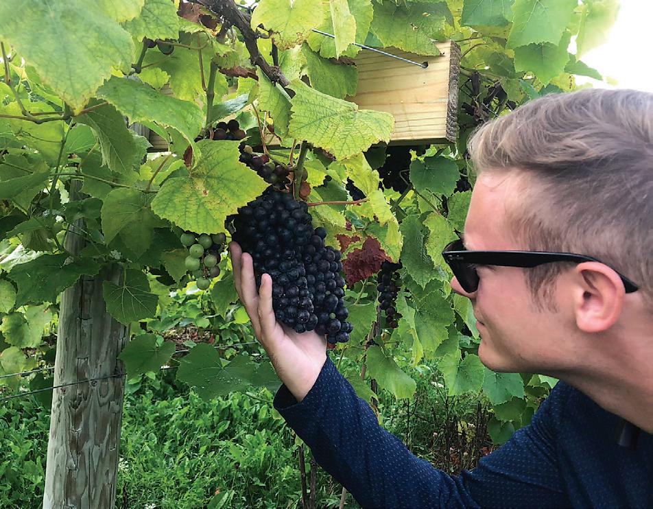Tending vineyards has been a life-time passion for Joe Juniper of Vermilion Valley Vineyards near Wakeman. Joe, the former president of the Ohio Wine Producers Association and a native of Sandusky, started working at a winery at age 13, getting hands-on experience in the vineyards about how what happens to the grapes during the growing season impacts what ends up in the glass and bottles of wine. He looks after the vineyards and assists in the making of wine at Vermilion Valley Vineyards, but insists that it’s his wife Kristi who has the superior palate. The bulk of what they grow is Europeanstyle vinifera grapes like Pinot Noir, Cabernet Franc, and Riesling. Juniper explains that the winery’s position near the southernmost part of Lake Erie protects it from the harsh lake effect snows and temperatures.