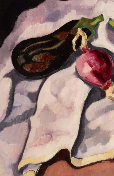Still Life (Eggplants and Onions) ca. 1929, oil on canvas signed verso inscribed and stamped on stretcher 19 3/4 x 24 in. frame: 26 x 30 in.