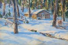 The Cabin in Winter watercolor on paper signed lower right; titled verso sight: 14 x 21 1/4 in.
