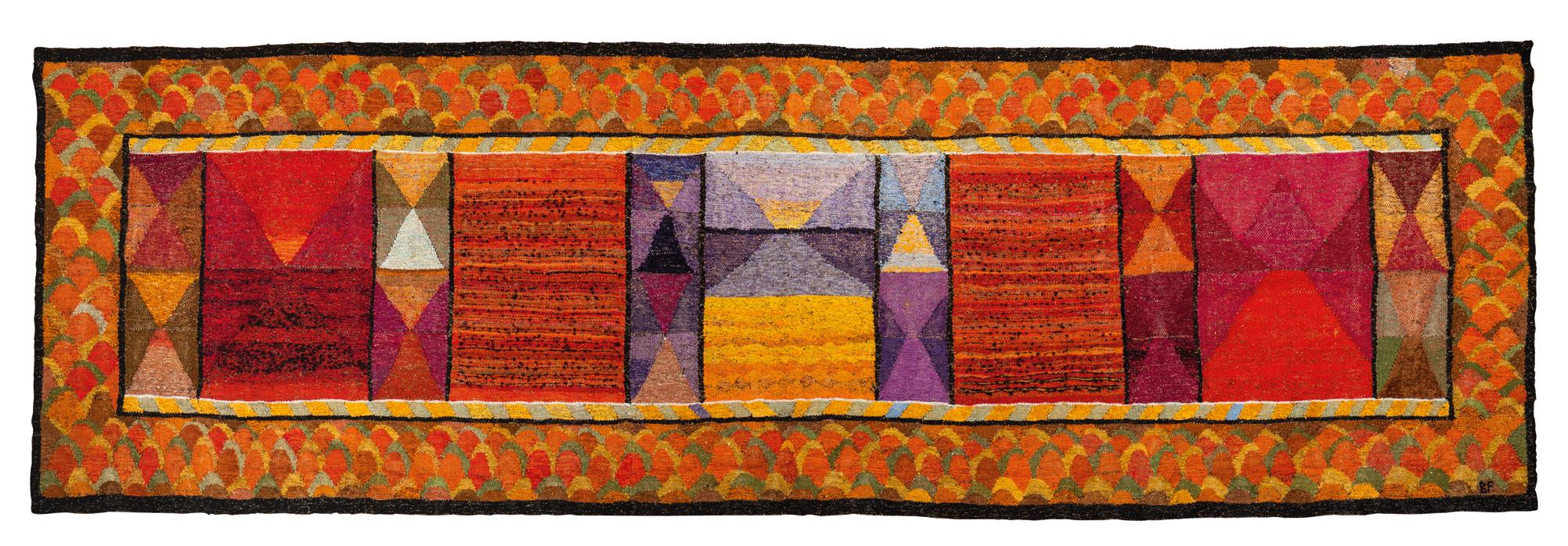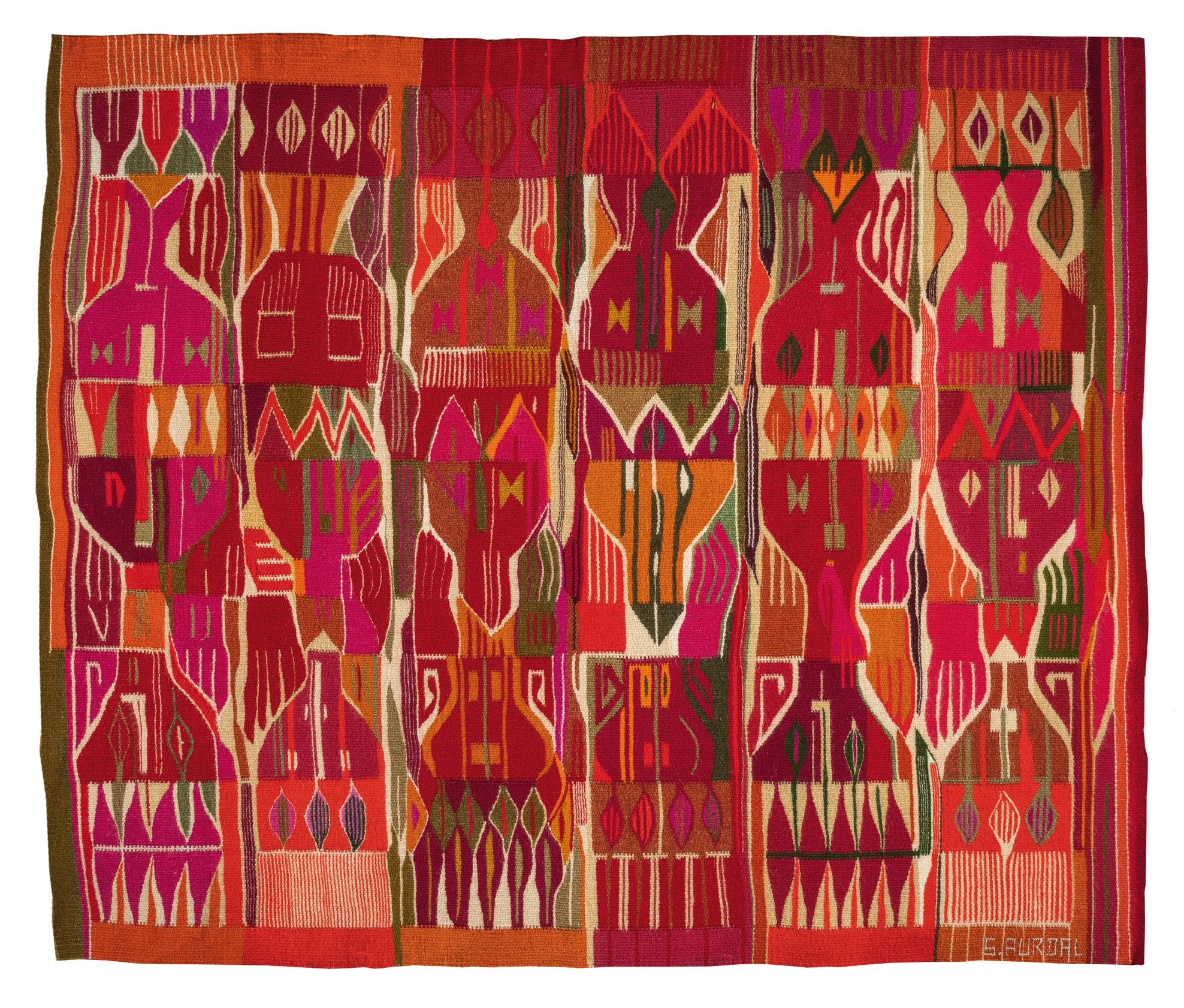 ANKER 1908-2000 KOMPOSISJON Billedvev: Renning i lin og innslag i ull 104x125 Signert nede t.h.: S. Aurdal NOK 50 000–70 000