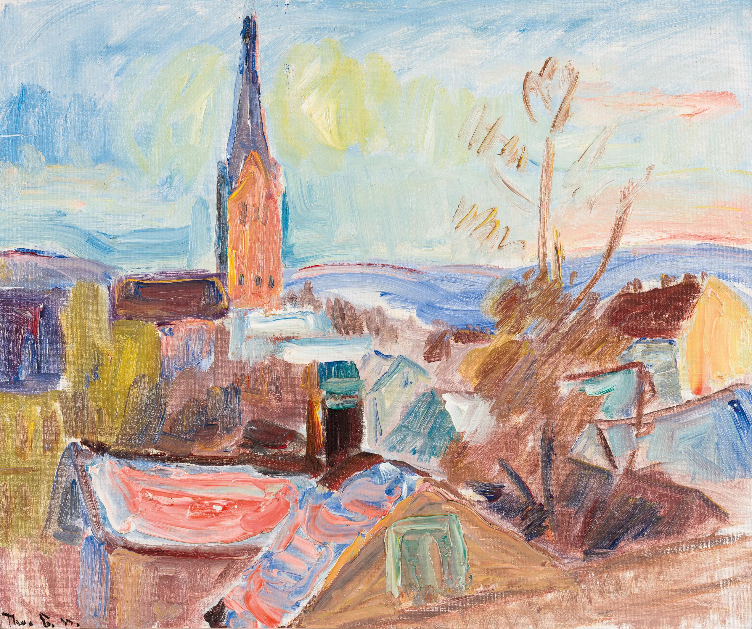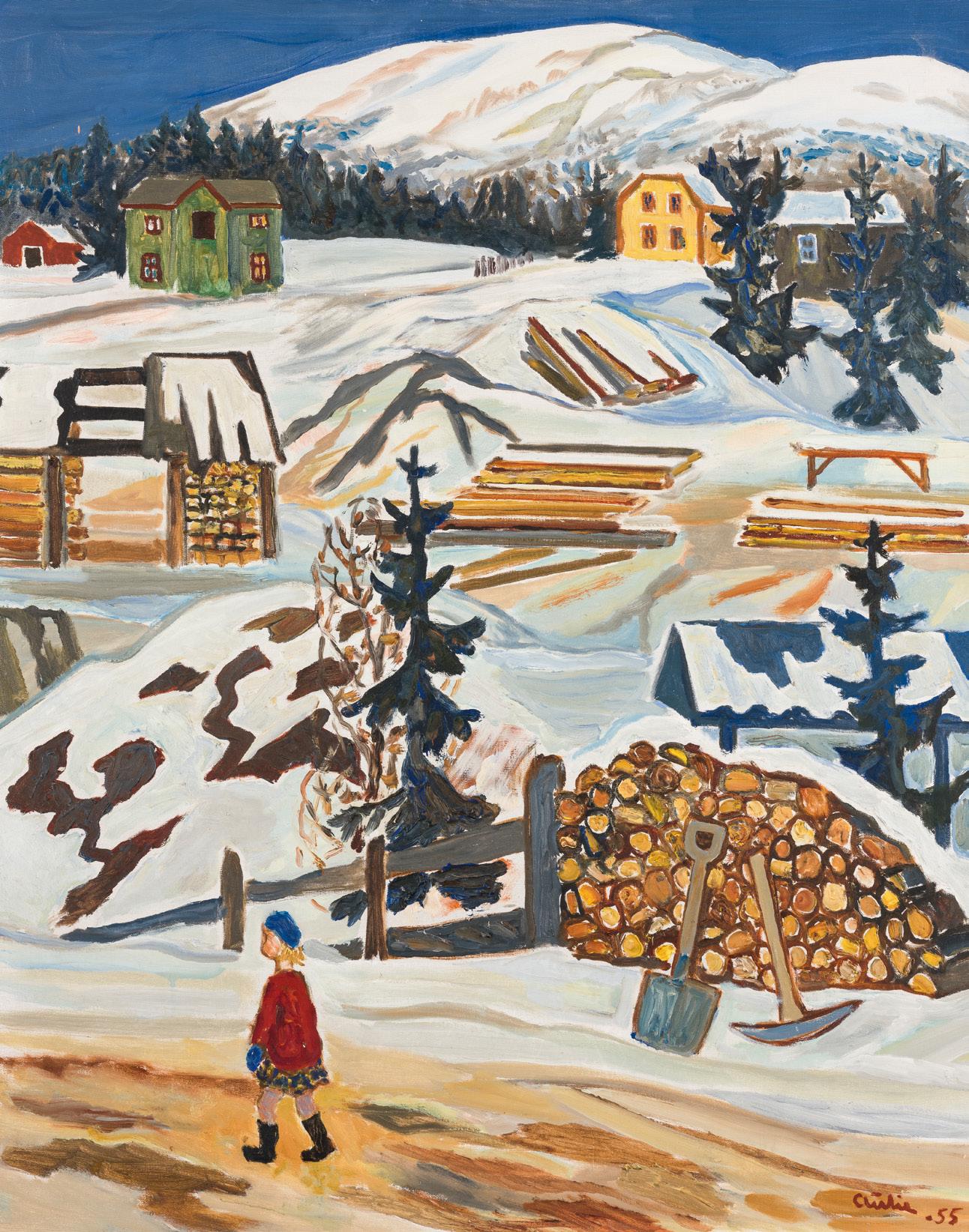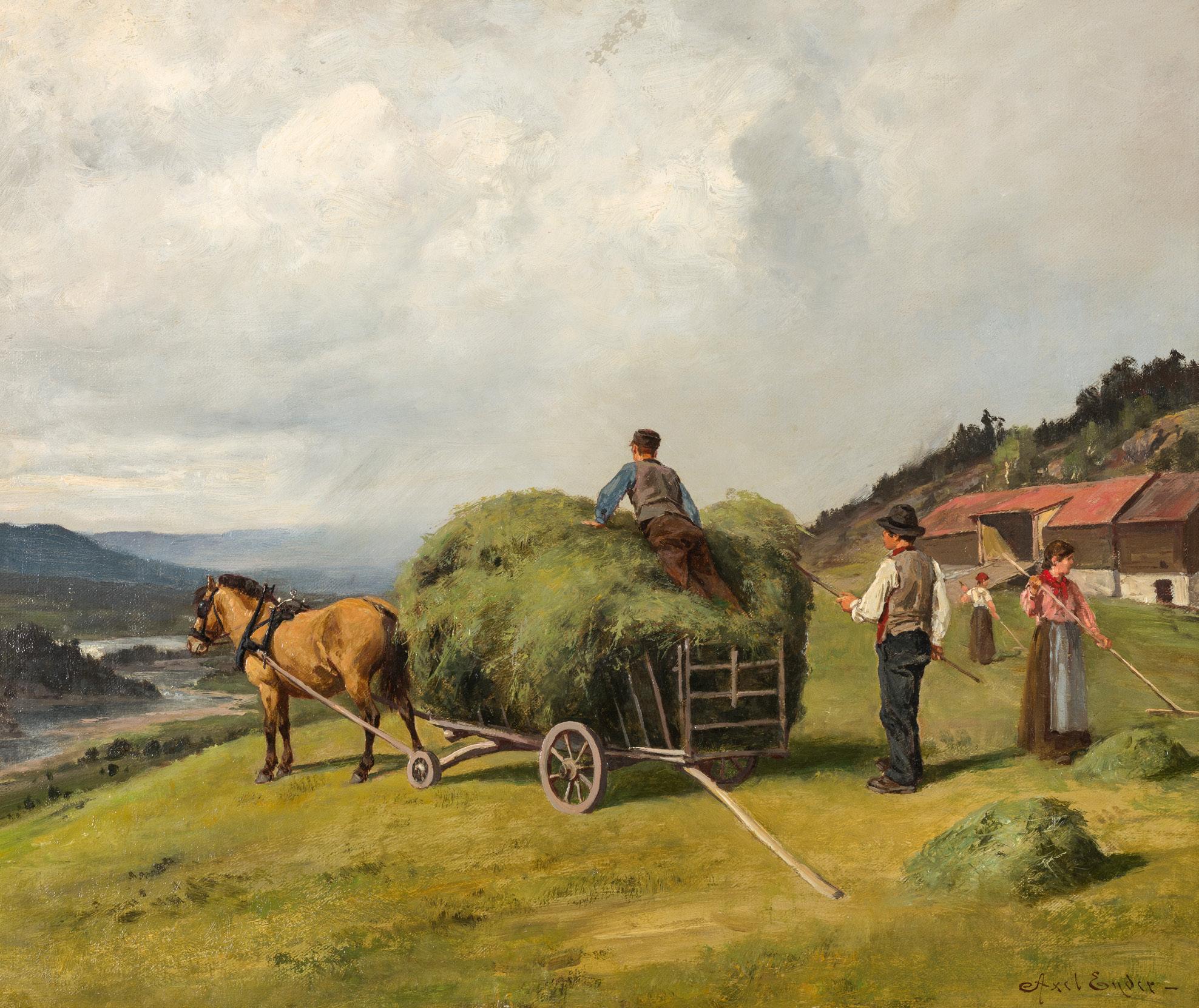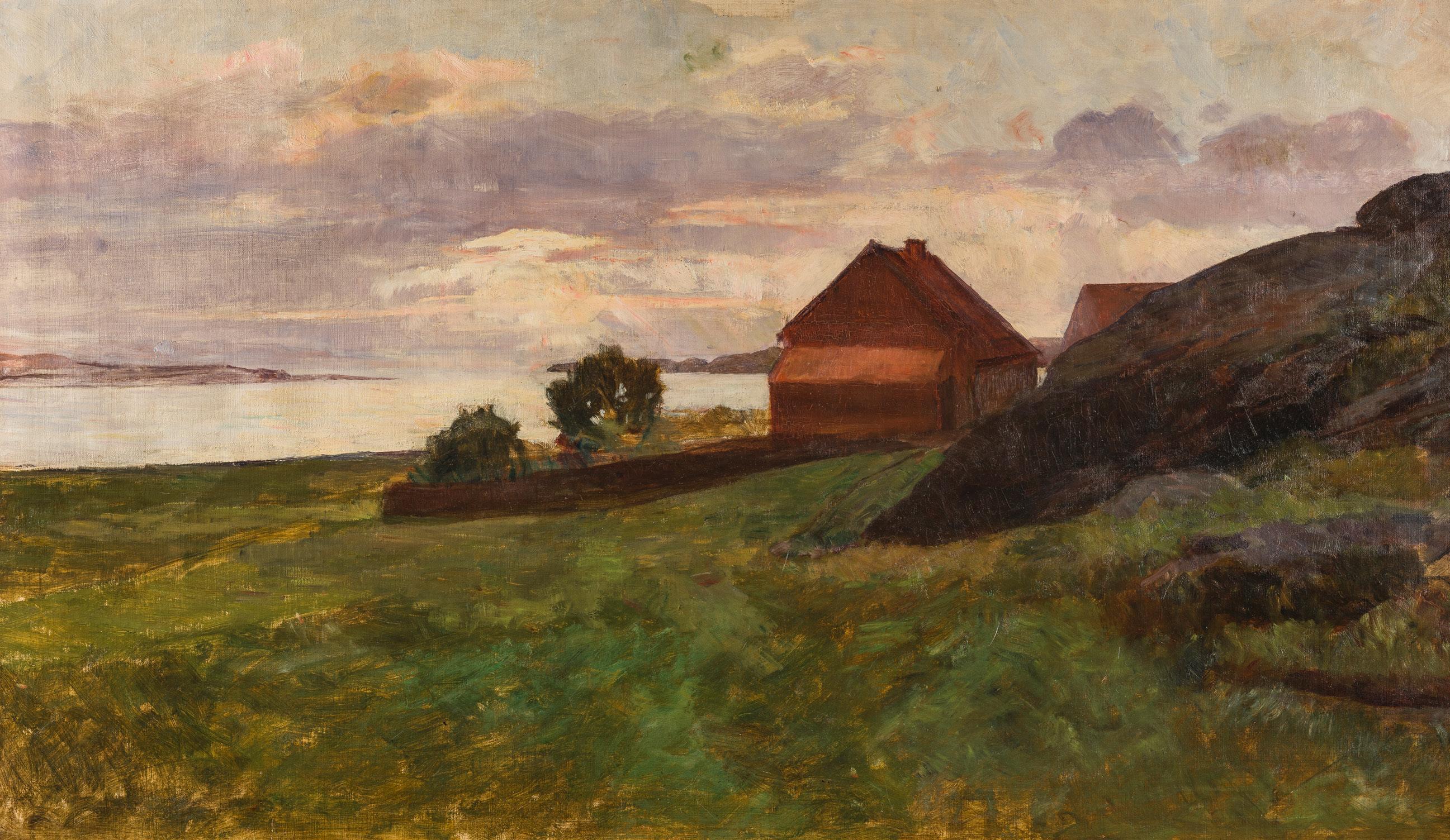 med hest og torvkjerre er med i bildet. Med kortere penselstrøk og friskere farger får hun luften til å vibrere i bildet, skjønt det er etter middag og stemningen synes å være satt i moll.