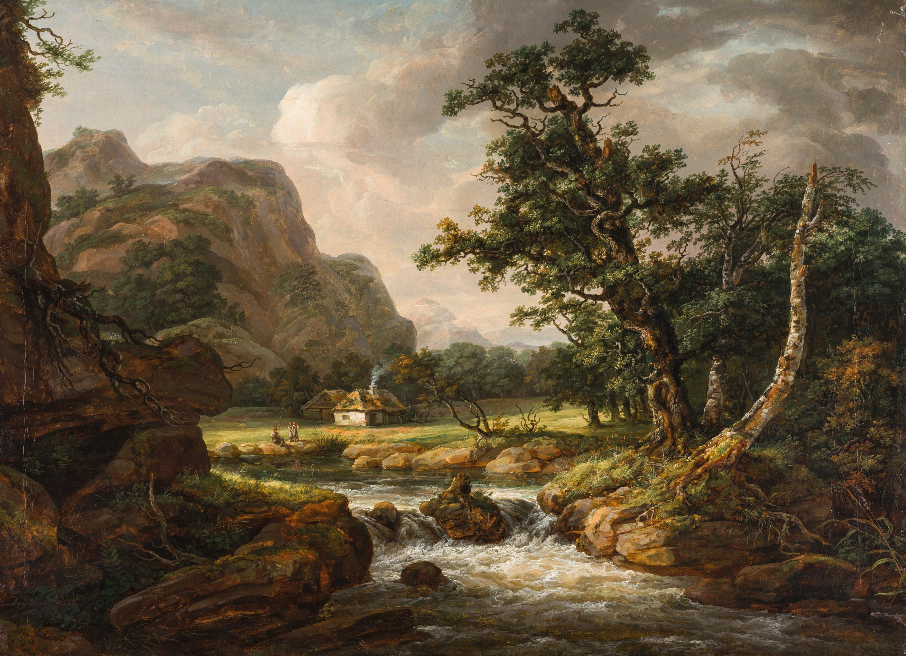 Norsk landskap, Rogna vannfall 1812, olje på lerret 58x47 cm. Privat eie.