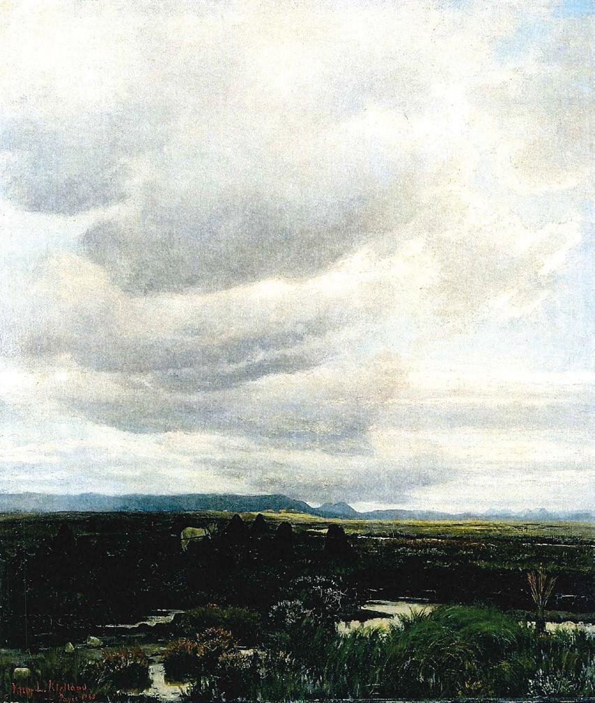 I tråd med Kitty Kiellands insistering på å unn gå kunstnerisk stagnasjon, var torvmyrmotivet godt egnet til å eksperimentere med formale elementer. Samtidig var torvmyrene et karak teristisk trekk ved jærlandskapet. Som land skapsmaler kunne Kitty Kielland både bidra til kunsthistorisk utvikling og til å gi Jæren en stadig aktuell plass i fortellingen om en ung na sjon med dype historiske røtter. Gudmundson, s. 37.