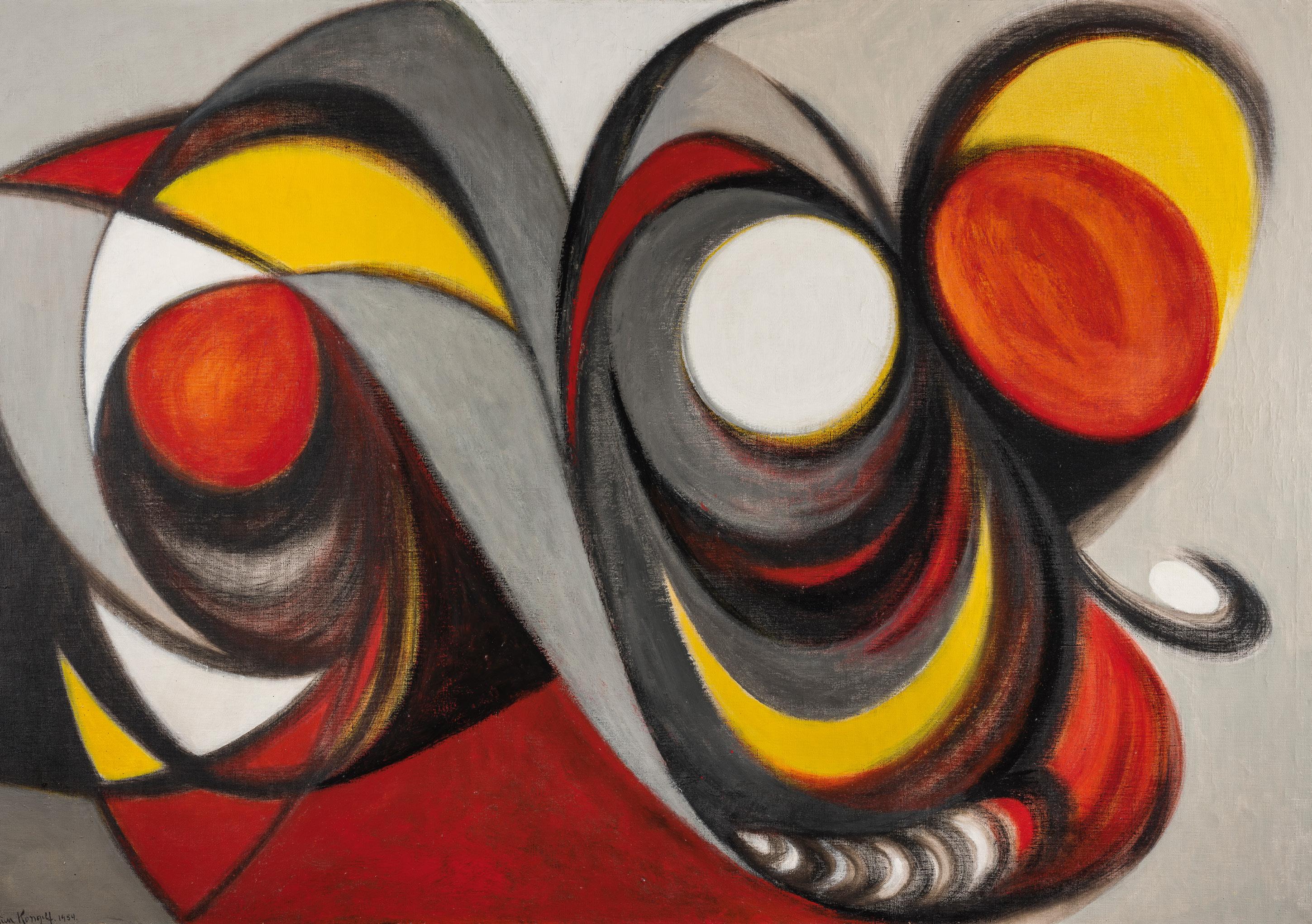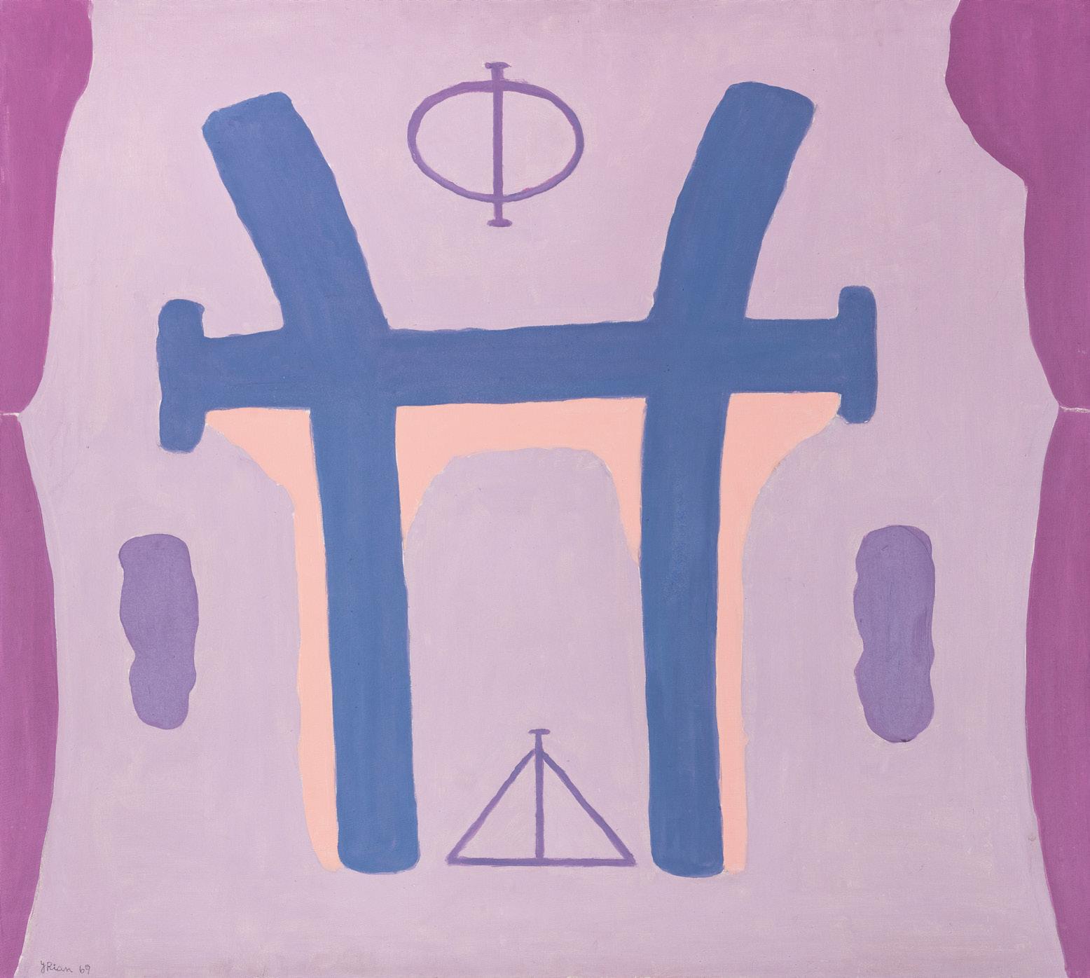 57Selges på Jubileumsauksjonen 29. november 2022. Siste innleveringsdag 11. november. WEIDEMANN, JAKOB 1923-2001 KOMPOSISJON 1968 Olje på lerret 130x130 Signert og datert nede t.v.: Weidemann 68 NOK 250 000–350 000
