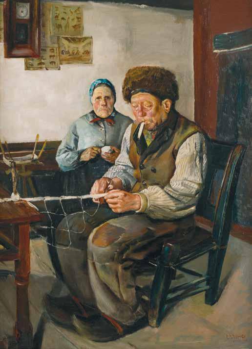 Mens Krohgs Skagen-bilder oftest er relativt enkle og storformede i sin oppbygning, gjerne med figurer sett mot en mer eller mindre udifferensiert bakgrunn, har han her med inntrengende detaljrealisme og interesse for det etnologiske gitt en nøyaktig redegjørelse for modellenes fattigslige klesdrakt og for de mange gjenstander i rommet.