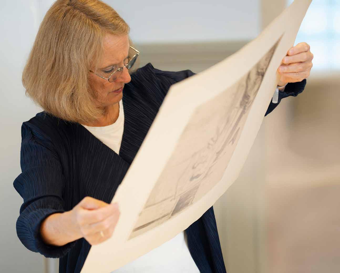 Forfatteren og kunstneren mellom kunstner og trykker Grafikeres åpningsutstilling deltok med fire overføringslitografier,