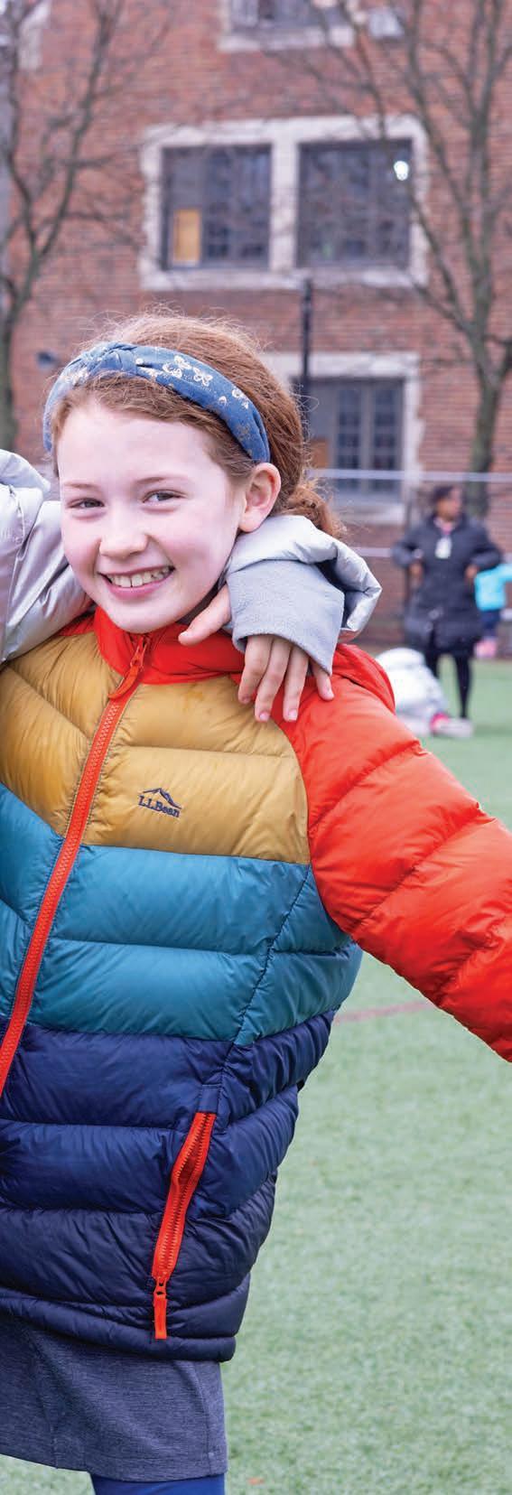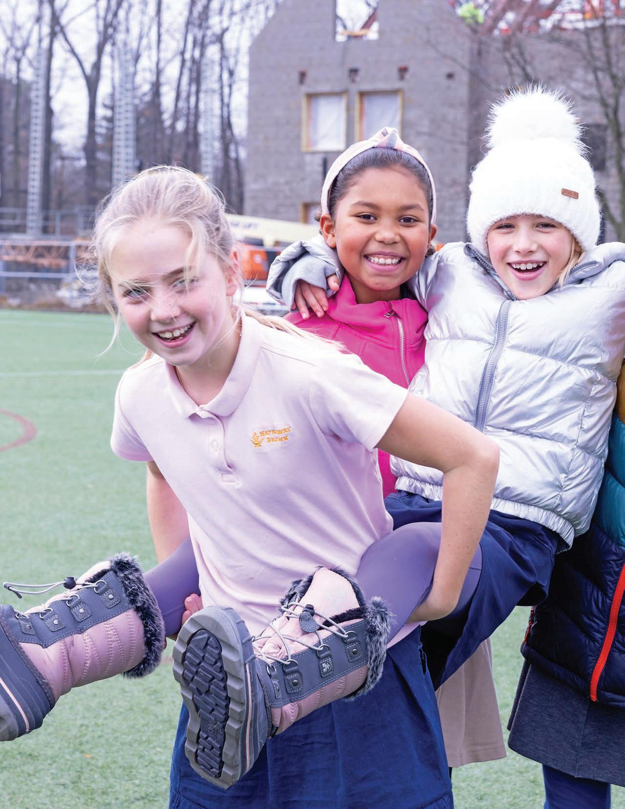 HB girls enjoy fun on Scaravilli Field! In the background, construction continues for the new addition on the South end of the Primary School which is currently undergoing extensive renovations (read the story on p. 26!).