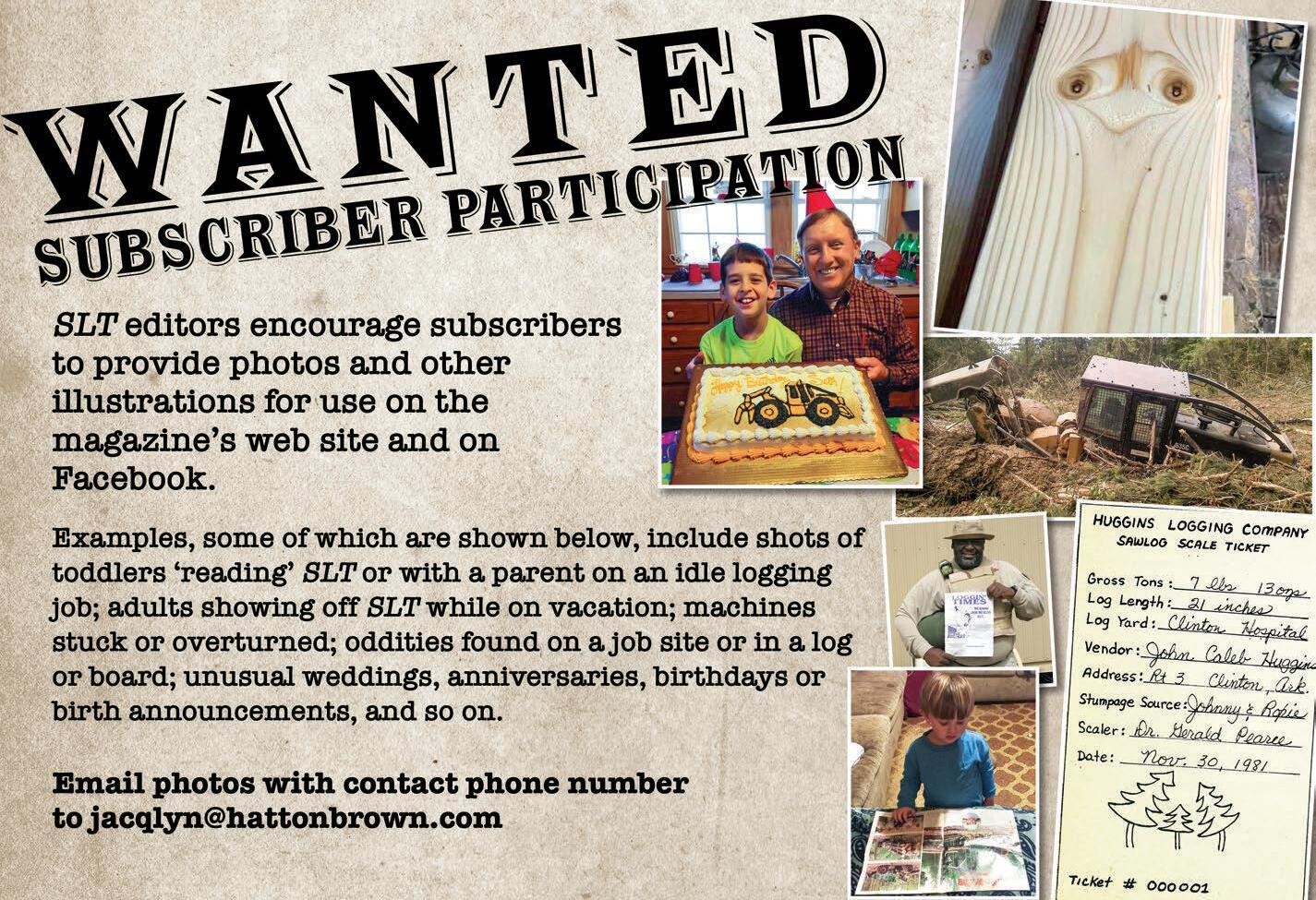 CONTACT: Call Bridget DeVane at 334-699-7837, 800-669-5613, email bdevane7@hotmail.com or visit www.southernloggintimes.com