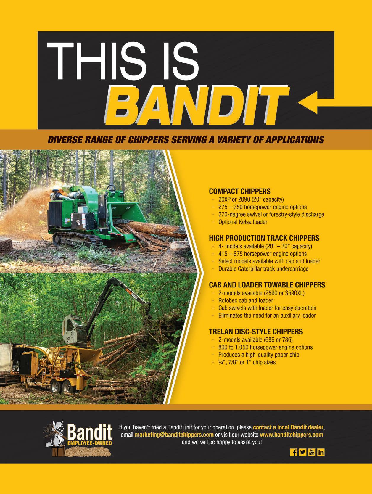 2023 marks Bandit’s 40th anniversary and much of its success is contributed to quality products, an amazing dealer network, loyal customer base, and their dedicated hard-working employees. The current product line consists of hand-fed and whole tree chippers, stump grinders, wood waste grinders, and Arjes slow speed shredders.