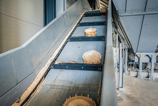Walking through the facility, the Vecoplan expert points upward. “The sawing lines are on the floor above us here. The waste wood falls through the floor onto the conveyor belts.” In this way, the sawdust is combined on several conveyors. A star