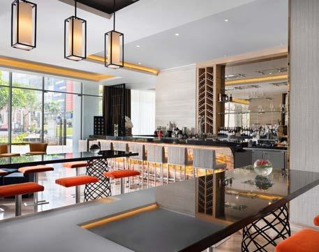 The Sphere Lounge located at the edge of the lobby with its sleek, modern design, encompassing floor-to-ceiling glass windows is the perfect setting for business or social gatherings.