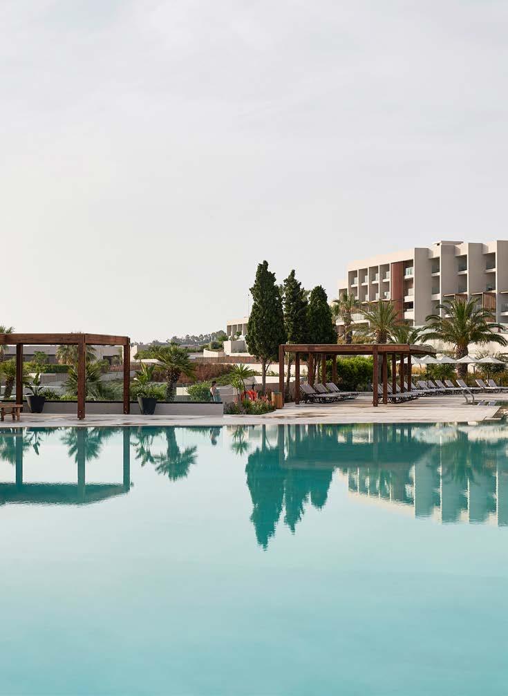 Inside is a wide selection of rooms and facilities, including 16 accommodation types ranging from spacious studios to 371-square-metre penthouses, all boasting city or sea views as well as a dishwasher, washer and dryer. A sea-facing pool, stateof-the-art fitness centre, varied dining options, Kids’ Club and business amenities round out the property’s comprehensive facilities, making it a comfortable home for