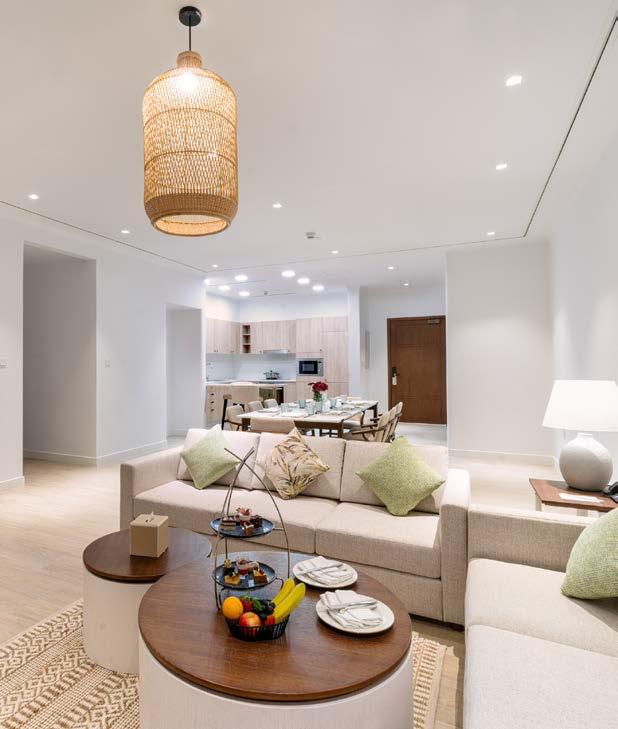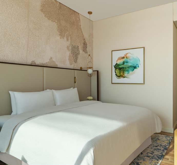 304 sophisticated guest rooms and suites are designed for reflection. A daily calendar of activities inspires connection and discovery. Health and wellness facilities, including a spa, outdoor swimming pools, multipurpose courts and a modern fitness centre, are crafted for rejuvenation. Additionally, five dining experiences serve