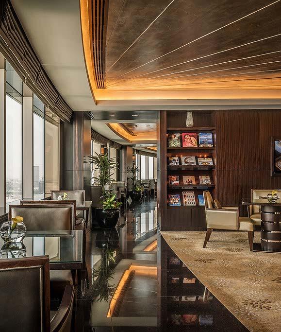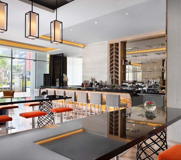 The Sphere Lounge located at the edge of the lobby with its sleek, modern design, encompassing floor-to-ceiling glass windows is the perfect setting for business or social gatherings.