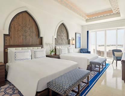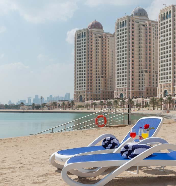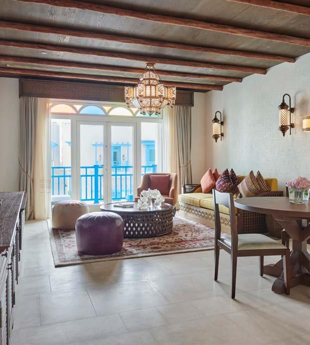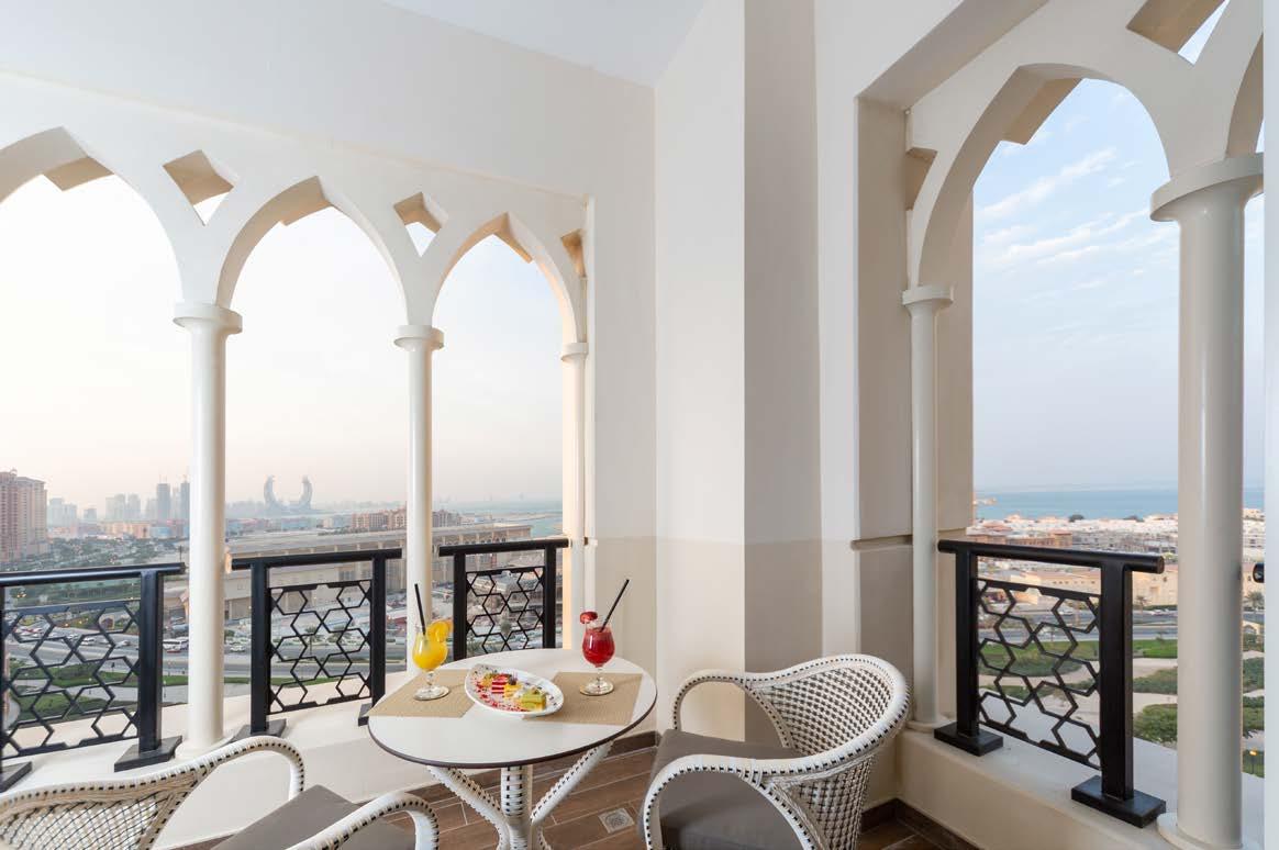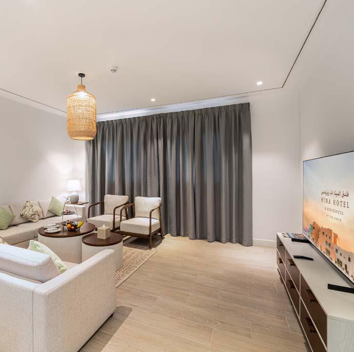 Mina Hotel and Residences’ architecture reflects Qatari indulge, with inclined walls, wooden doors, windows and shutters adorned with vintage metalwork. The Hotel also includes modern gym facilities. Every detail has been carefully curated to provide contemporary and minimalist luxury. Guests can immerse themselves in refined design, indulge in in-room refreshments and revel in the breathtaking sea views that grace the apartments.