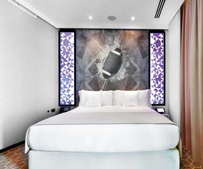 All 452 guestrooms are furnished with polished and soft quilted leather palette walls that adorn the headboard corner to the massively crafted polished aluminiumpaneled mirror surrounding the space and equipped with avant-garde in-room technological equipment representing style and elegance.