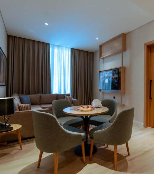 Ideal for business and leisure travelers, it features spacious, fully- furnished suites with living and dining areas, providing a home-like atmosphere with modern amenities. The hotel boasts a range of dining options, including 22 Prime, renowned for its premium steaks and exquisite cuisine, and Restaurant 5, which offers diverse local and international dishes for both breakfast and lunch.