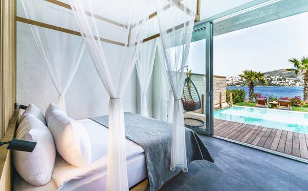 Every detail has been carefully curated to provide contemporary and minimalist luxury. Guests can immerse themselves in refined design, indulge in in-room refreshments and revel in the breathtaking sea views that grace the apartments.