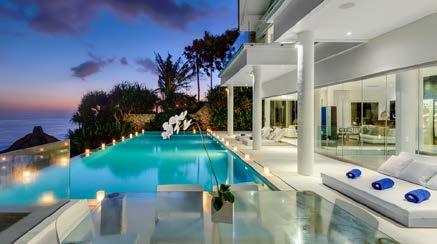 Karma Kandara blends traditional Balinese architecture with luxury amenities to create a series of private villas, each formed with pavilions arranged around their own tropical courtyard and pool. The two, three, four and five bedroom villas feature natural stone, teakwood decks and ironwood tile roofs. Sliding doors open out to large balconies with garden, island and ocean views. The Grand Cliff Front Residences offer five bedrooms in contemporary Balinese style, with sweeping views of ocean and sky.