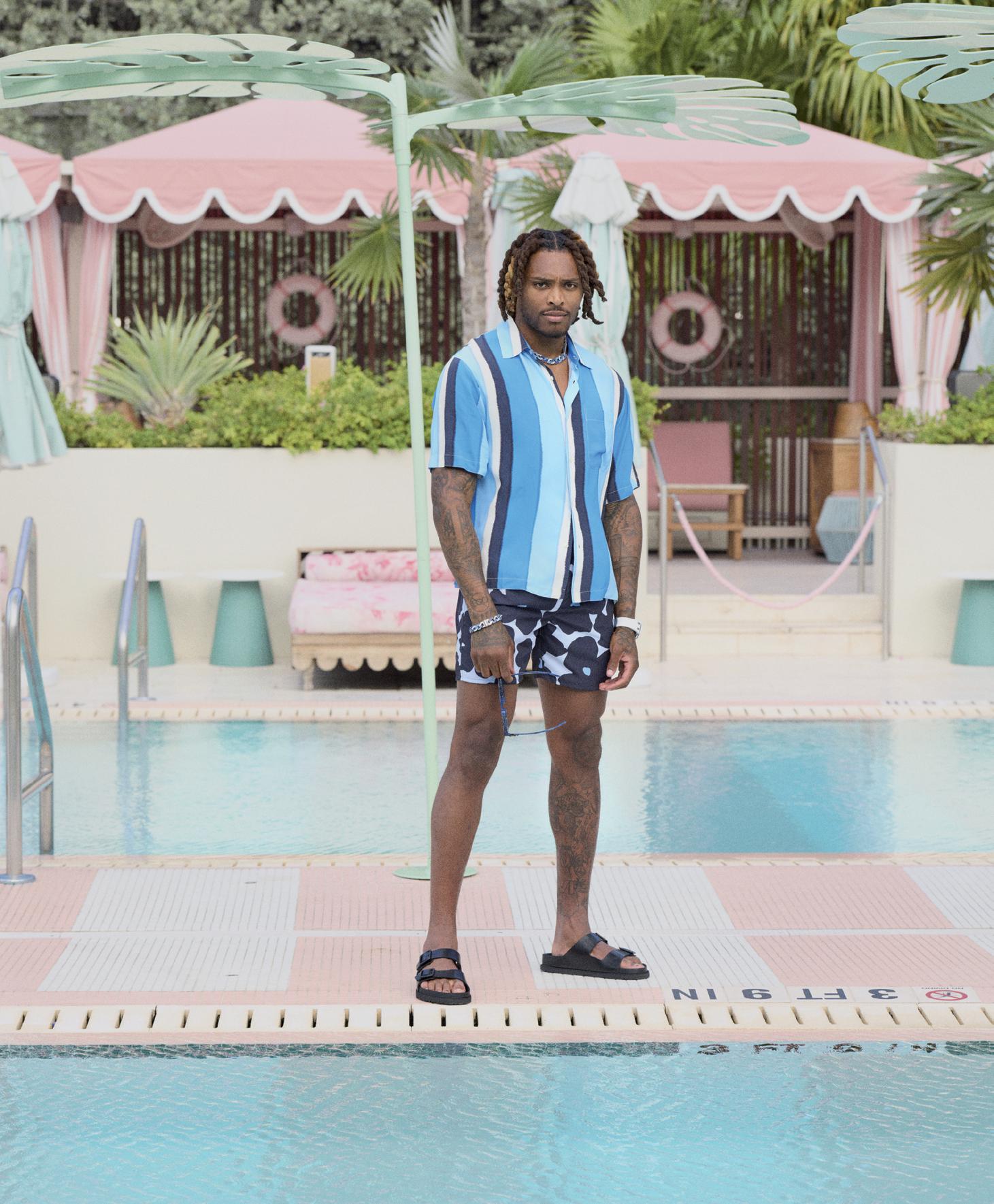 I do a quick catalog in case something might have physically changed in the year since I saw him last (mere months after his Super Bowl LVI win, at a cover shoot for our Los Angeles book at his then-home in the Hidden Hills), but nothing is out of place: braided hair on point, sleepy eyes, Southern drawl. Check, check, check. But there is one major transformation: his smile. It’s ear to ear, beaming, infectious; it extends to his eyes and permeates his skin. It makes me want to smile, too.
